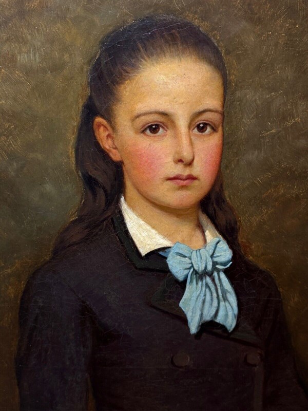 A distinguished Victorian oil on canvas depicting Beatrice Mary Clifford (b.1861), portrayed at the age of fourteen.