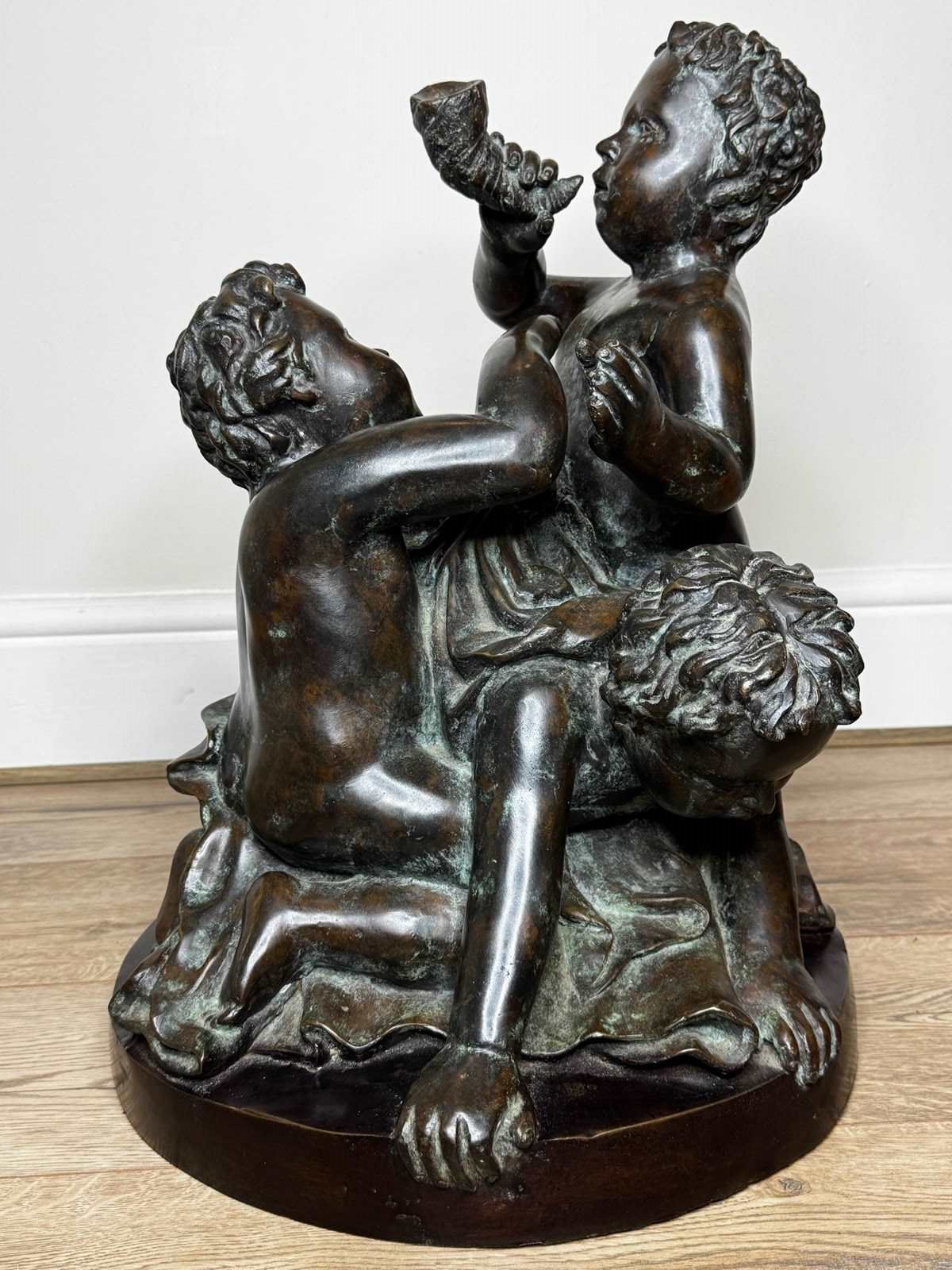 Classical Grand Tour French Bronze Group – “Call of the Triton Conch” Sea Putti, After Clodion (c.1820) – In the Manner of Gonon Frères, Paris