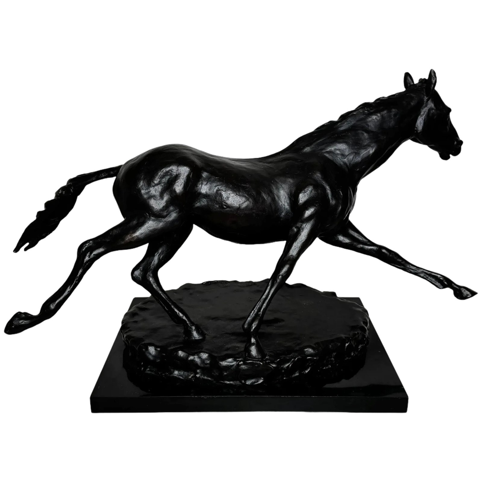 A powerful and highly collectible bronze sculpture titled Galloping Horse by Enzo Plazzotta. This limited edition cast (6/9) captures the dynamic energy of a horse in full gallop, frozen at the suspension phase where all four hooves leave the ground.