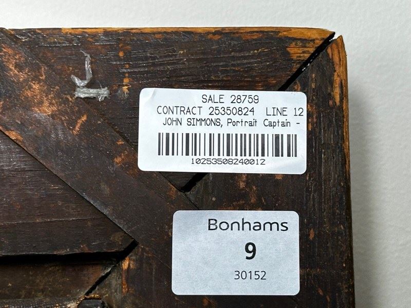 Colour and form are organised around a limited, harmonious palette of navy, white and gilt, which centres attention on the sitter’s face and insignia. The flesh is modelled with subtle gradation while the uniform and metallic highlights receive more decisive brushwork. A restrained, atmospheric background provides spatial depth without distracting from the sitter’s presence. These technical features align with documented works attributed to John Simmons the Younger.