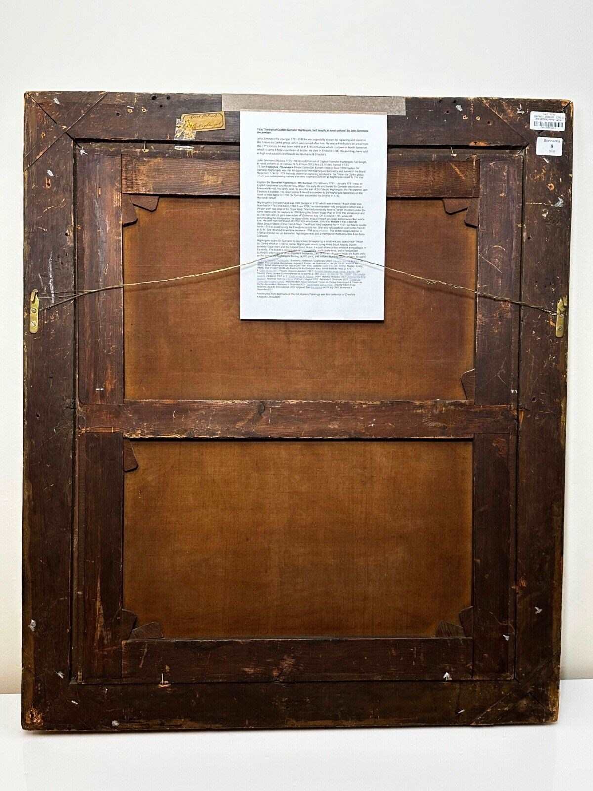A refined Georgian naval portrait, oil on canvas, circa 1760 — attributed to John Simmons the Younger (Nailsea 1715–1780). This half-length depiction of Captain Sir Gamaliel Nightingale, 9th Baronet (1731–1791), combines authoritative presence, period decorative appeal and secure auction provenance, making it a compelling choice for decorative projects, country-house interiors and gallery display.