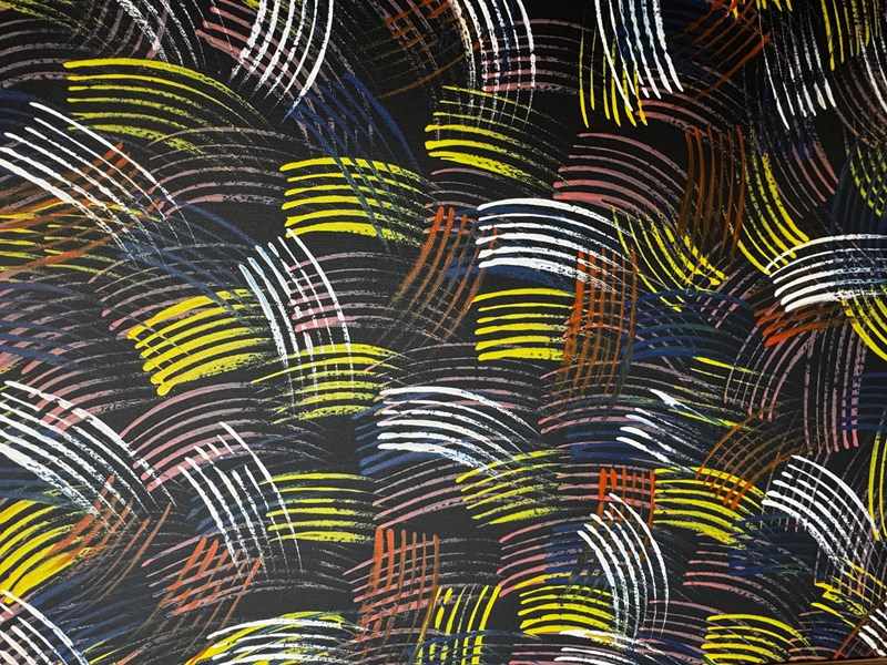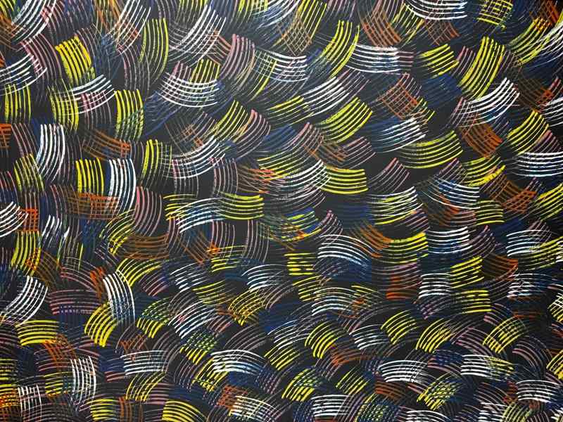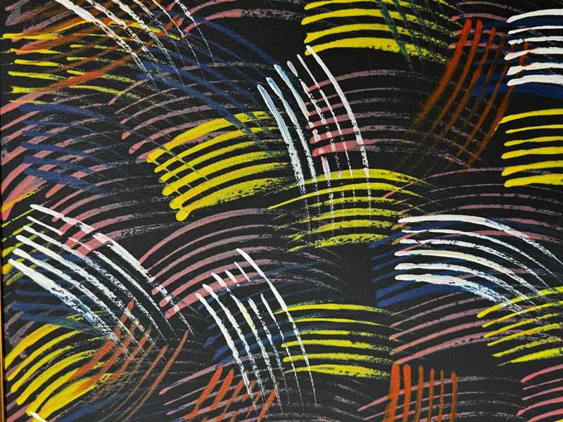 Nampijinpa’s art bridges ceremonial iconography and modern abstraction, transforming the rhythm of song, dance, and energy into colour and form.