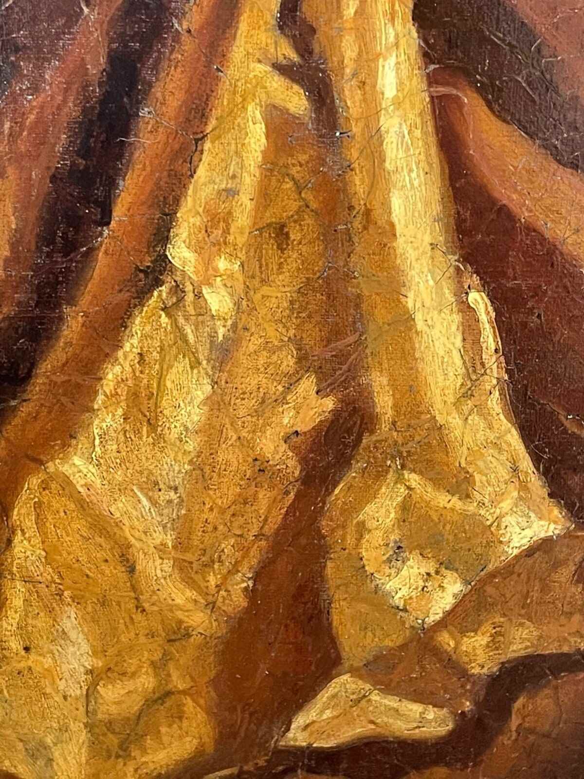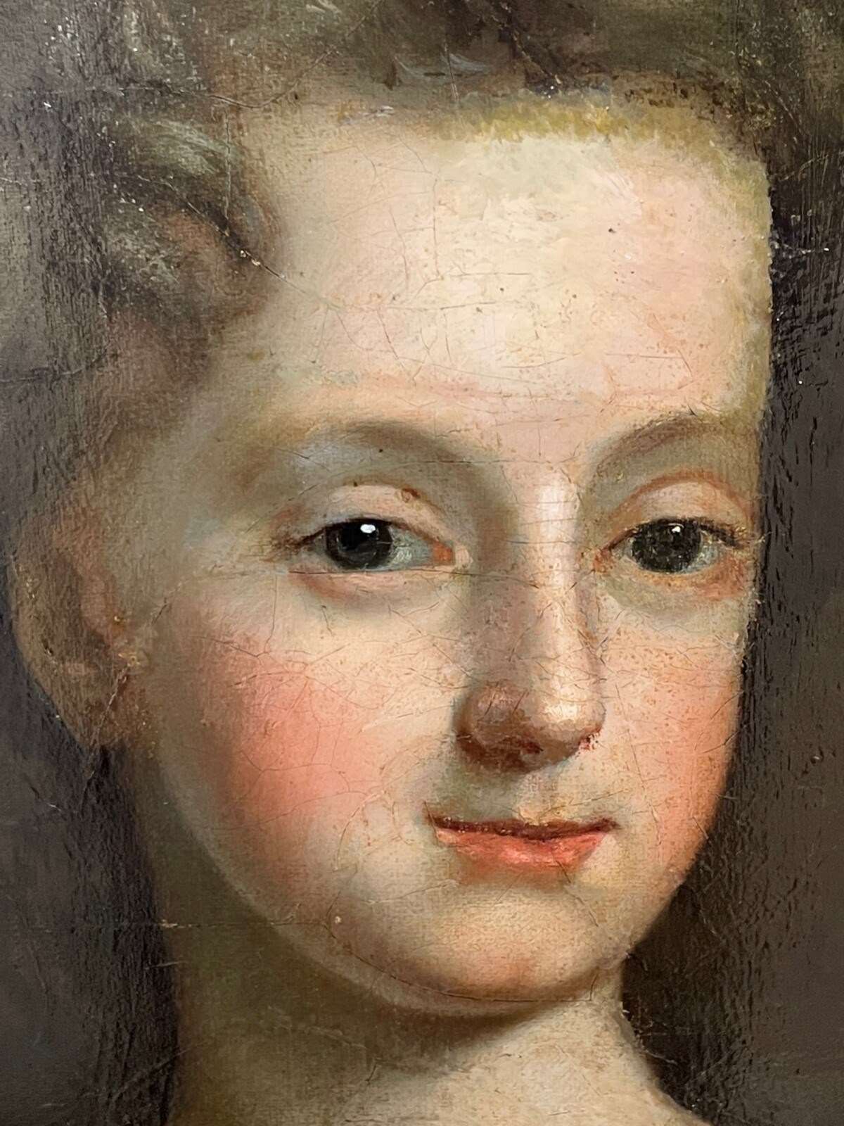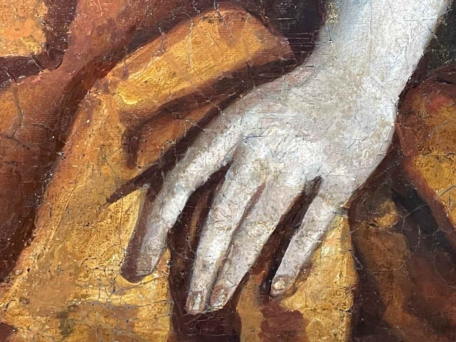 The canvas has been professionally relined. Age-appropriate craquelure present with areas of foxing. Minor paint loss and historic retouching visible. Surface revarnished.