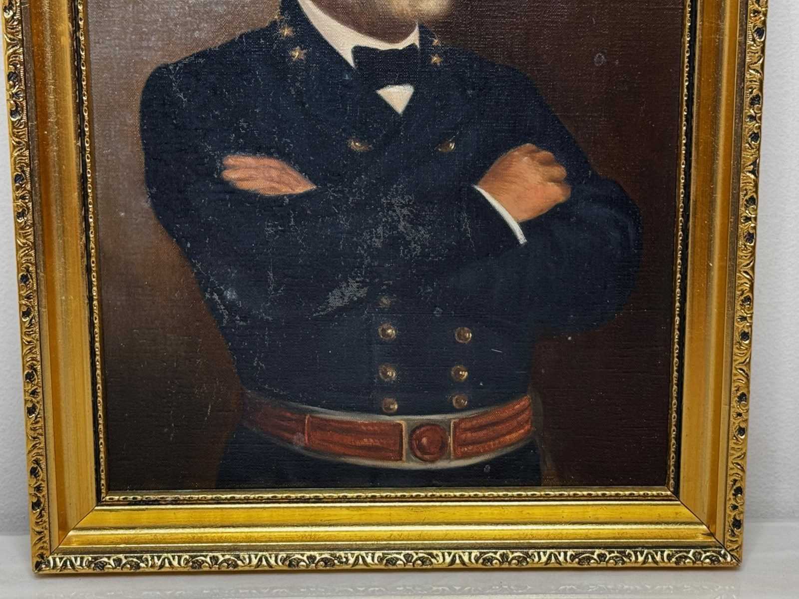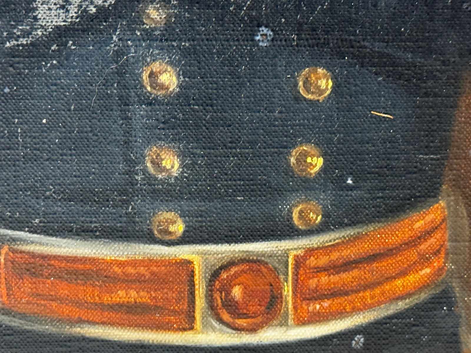 Presented in a later gilt moulded decorative frame. The warm gold finish complements the tonal warmth of the background and the brass detailing of the uniform.
