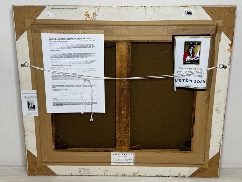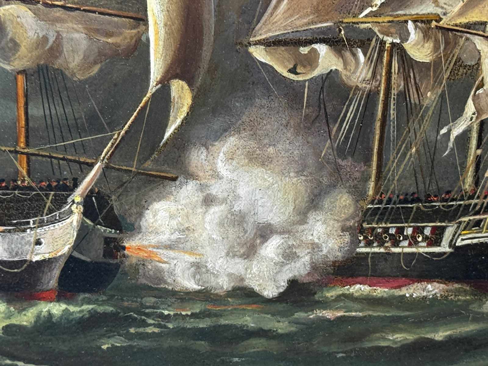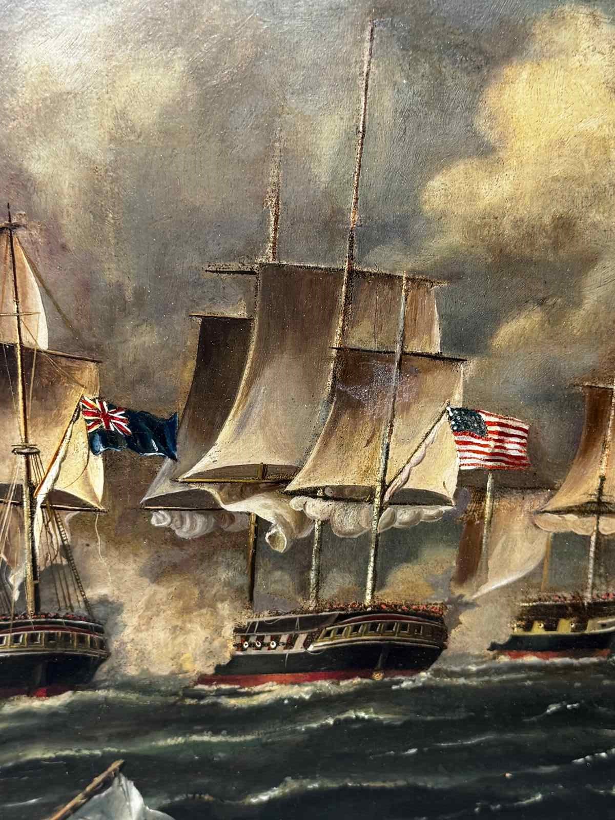 USS Constitution, Old Ironsides, War of 1812 painting, Thomas Buttersworth style, English School marine painting, early 19th century oil on canvas, maritime art, naval battle painting, American naval history, maritime collectors, decorativecollective, Cheshire Antiques Consultant LTS.