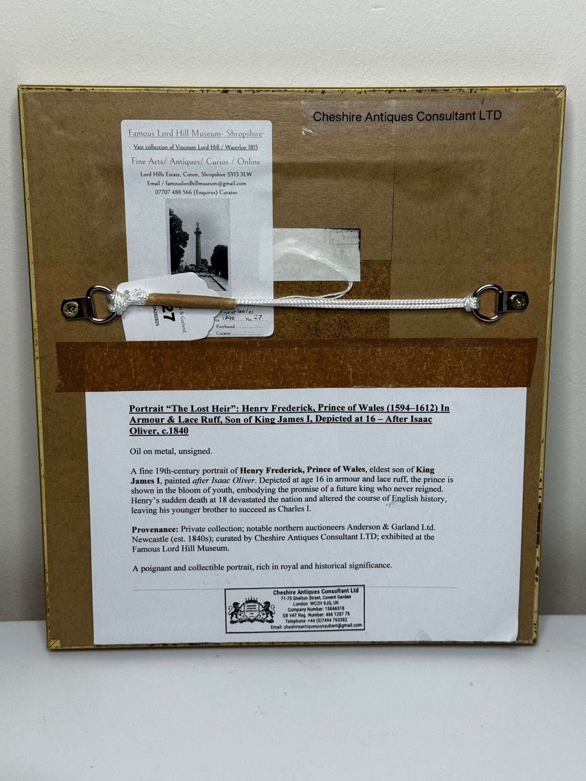 This portrait, painted in homage to Oliver’s likeness, offers collectors and historians a moving reminder of the Stuart heir who never reigned.