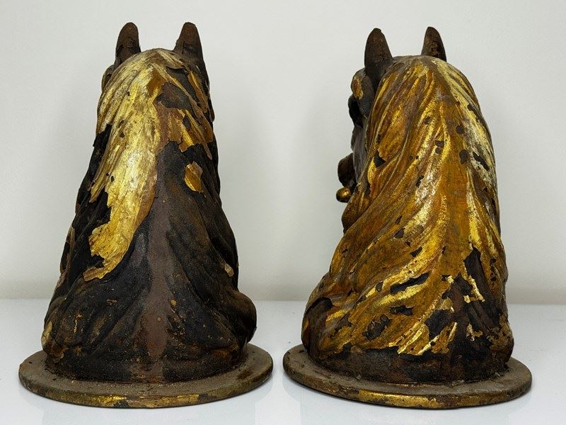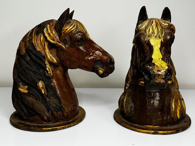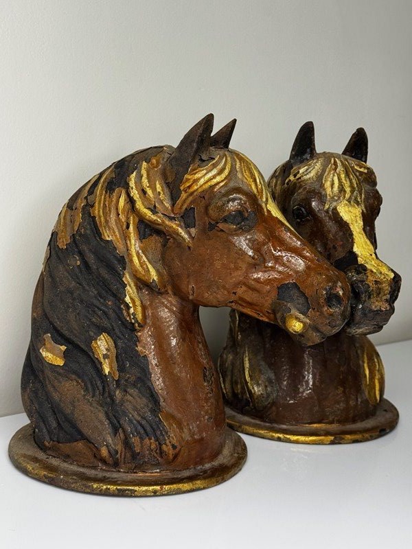 A Rare Pair of Scottish Victorian Equine Cast-Iron Horse-Head Gatepost Finial Sculptures
