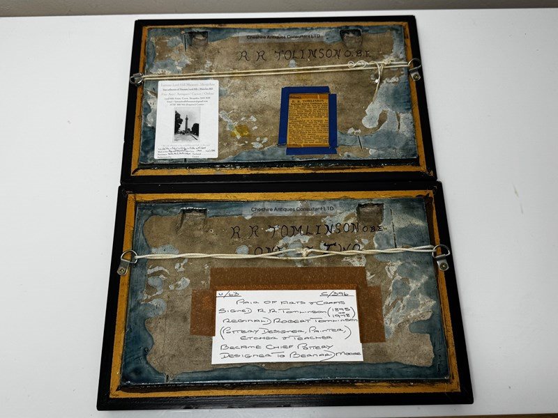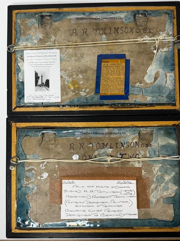 Pair Arts & Crafts Tile Plaque Sculptures Attributed Reginald Robert Tomlinson