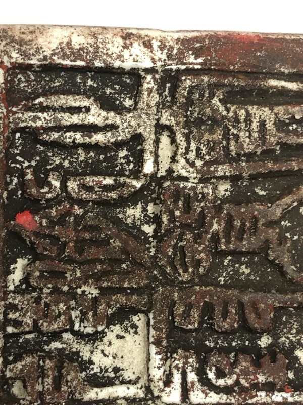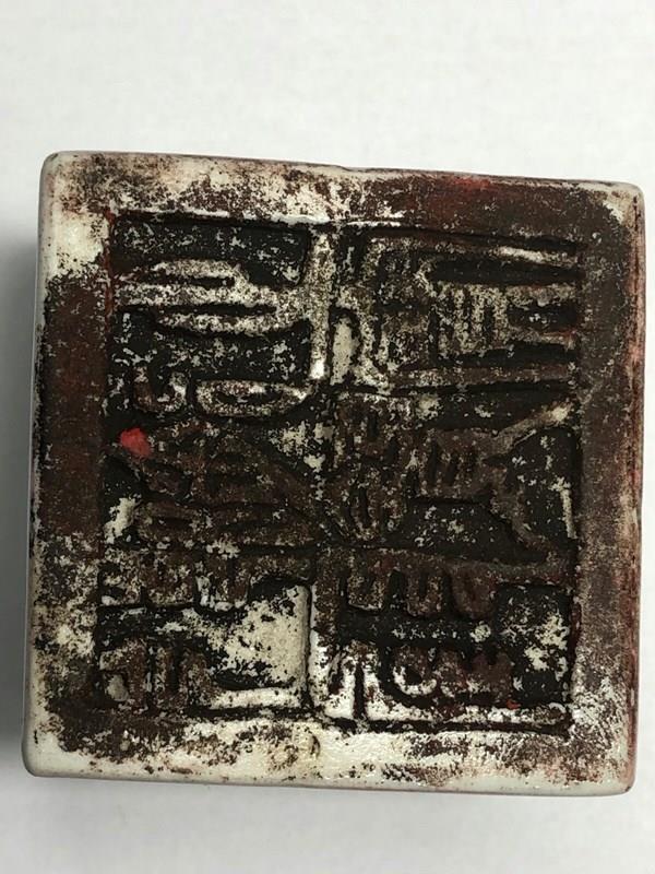 The underside carries an archaistic four-character seal-script mark carved in traditional format. The seal is decorative in nature and reflects classical Chinese seal aesthetics rather than a later printed factory mark.