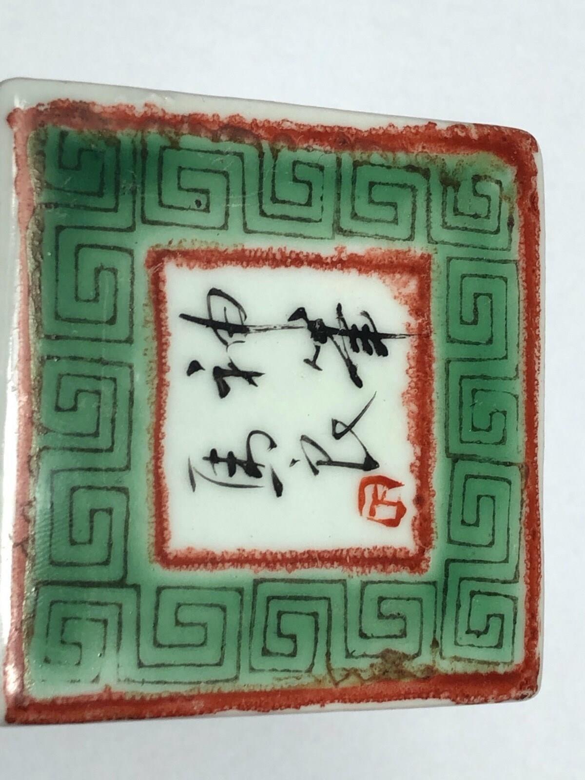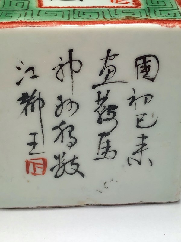 19th Century Hand-Painted Porcelain Cube with Auspicious Calligraphy