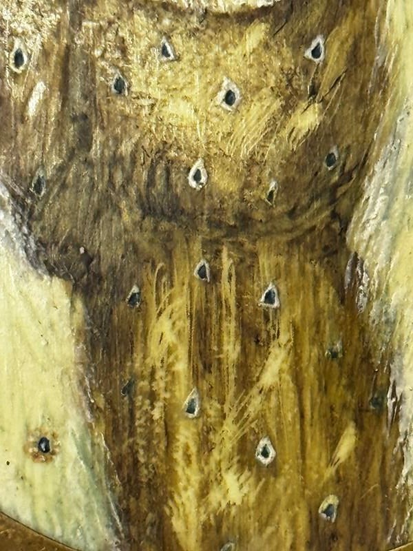 Good antique condition. Colours remain fresh and stable. Light wear consistent with age. The gilt frame retains natural patina with minor warping.