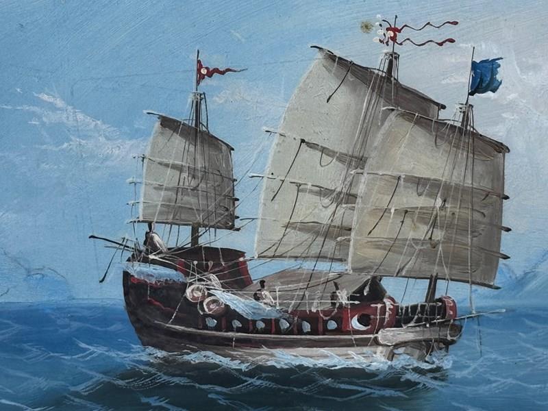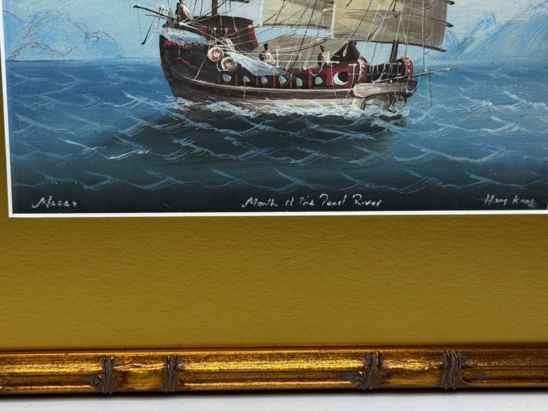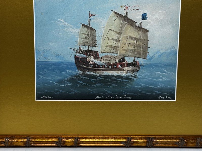 Traditional Colonial Marine Painting Junk Sailing Ship Pearl River Kong Kong