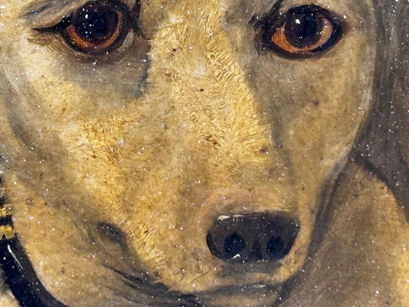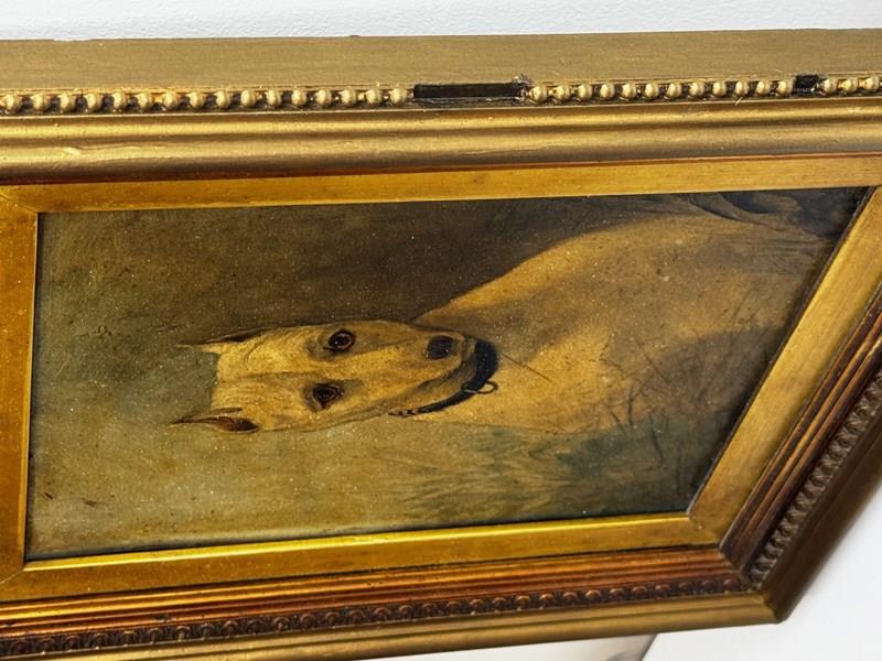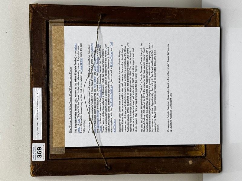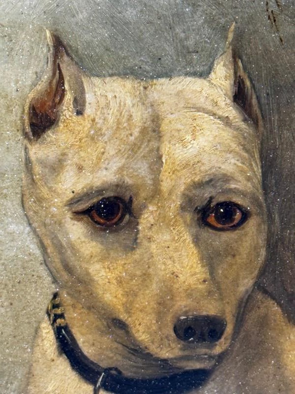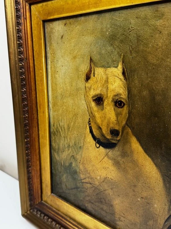 Victorian Oil Painting Extinct Breed Sad White English Terrier Dog