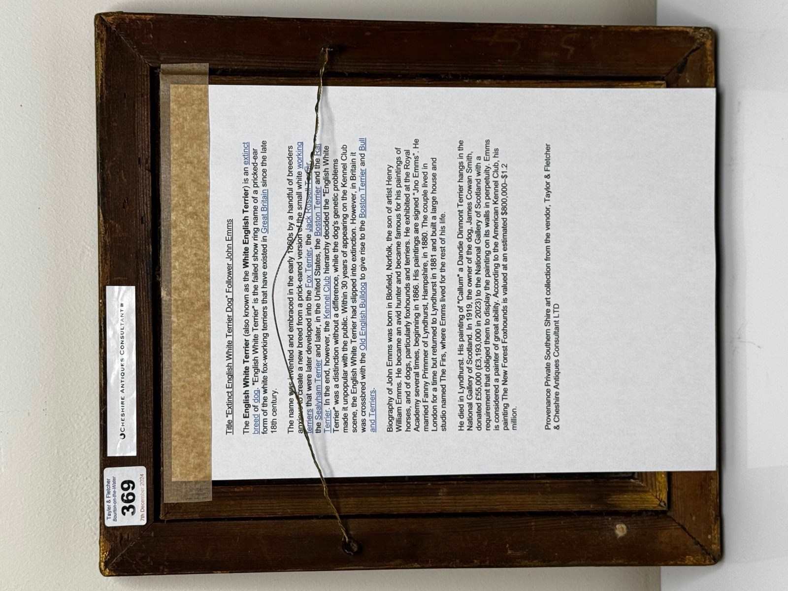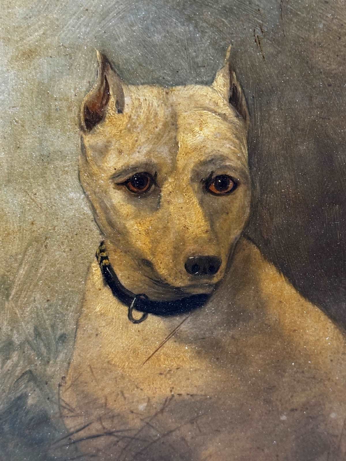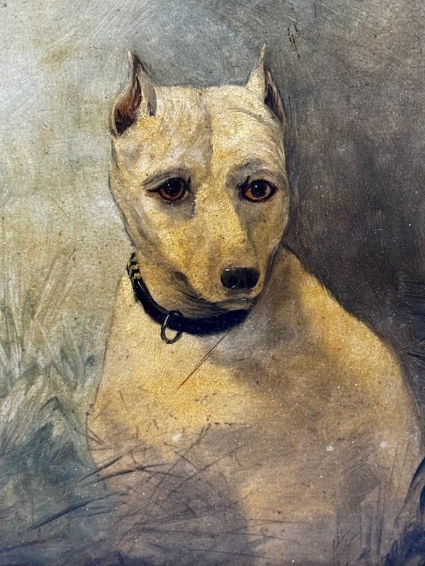 19th Century Victorian Oil Painting Animal Portrait Sad Extinct White English Terrier Dog Follower Of John Emms.