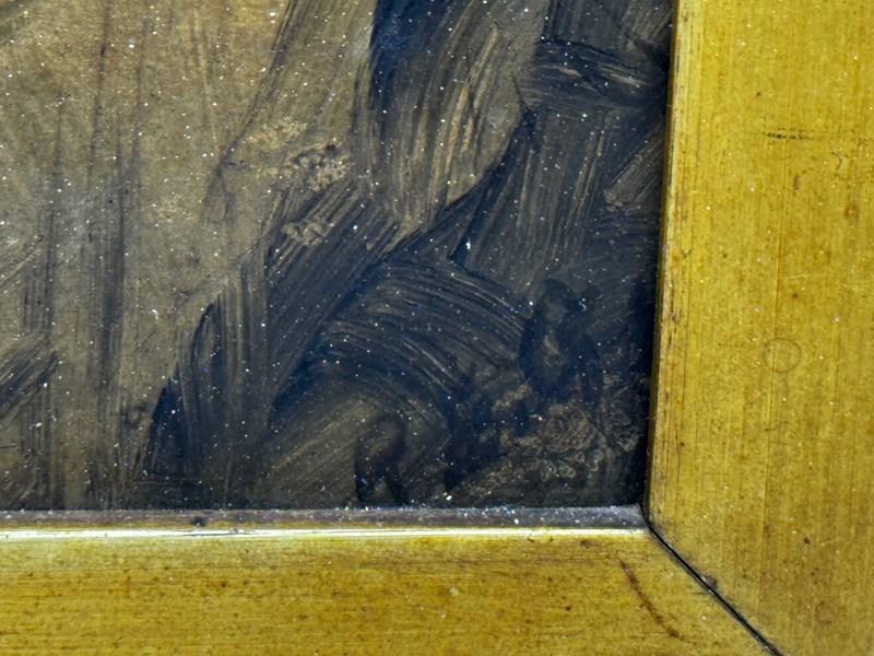 Front painting surface is in acceptable overall order. With yellowing to the varnish and craquelure & foxing in places. The frame has some losses & repairs also over painting commensurate with usage & age.