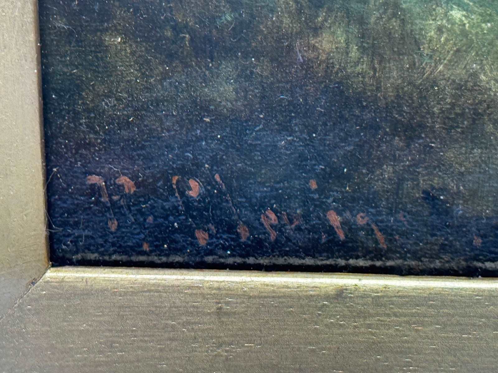 One of the notable strengths of this example is the survival of its original gilt wood frame. Substantial, weighing around 8 kg unwrapped, it features richly moulded floral and foliate gesso decoration typical of the late Victorian period. The frame does not merely enclose the painting; it forms part of the overall presentation, reinforcing its period character and intended setting.
