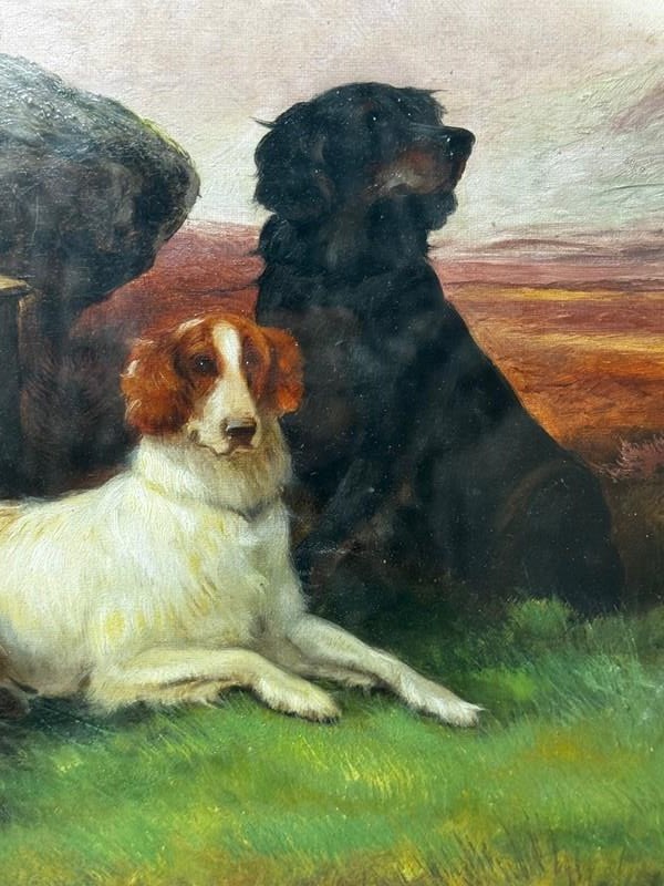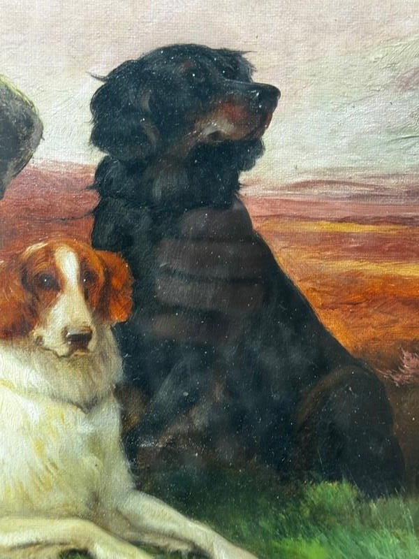 For today’s collector or decorator, it offers not just a pleasant picture of dogs and game, but a glimpse into the visual world of the late 19th-century country house. Its honest signs of age, original frame and well-documented history only enhance its appeal, making it a rewarding piece for anyone with an eye for period British art, canine subjects or the rich tradition of sporting painting.