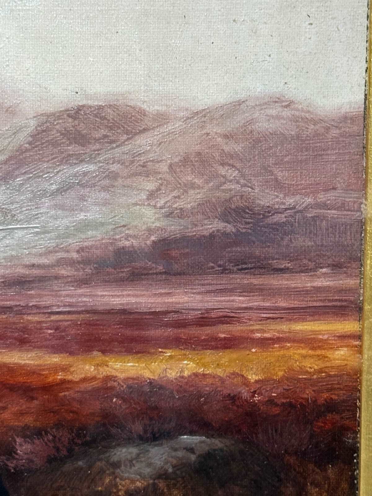 The Highland setting plays an important role in this cultural story. During the 19th century, Scotland was romanticised as a landscape of rugged beauty, sport and noble wildness. Sporting estates and deer forests proliferated, and artists responded by producing images that combined picturesque scenery with scenes of pursuit and reward. Cleminson’s painting taps into this tradition, offering a view that is both specific in its detail and emblematic of the broader genre.