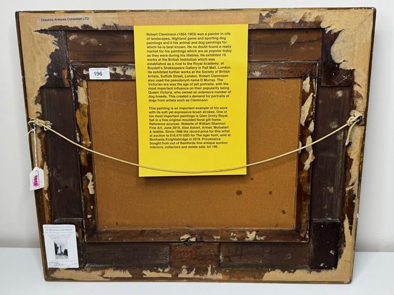 Robert Cleminson (1864–1903) was a British painter in oils best known for his landscapes, Highland game scenes and animal paintings. He developed a particular reputation for sporting dogs and game subjects, catering to the tastes of Victorian patrons who enjoyed shooting, stalking and rural estate life.