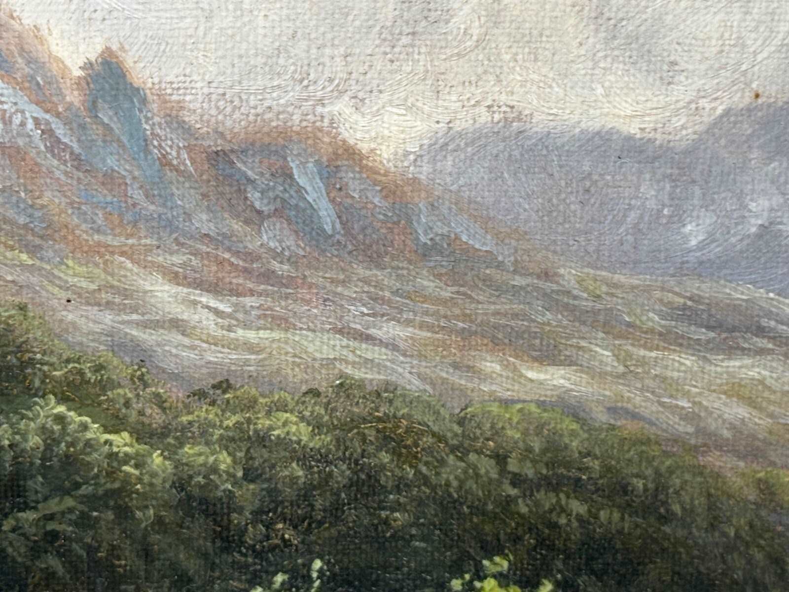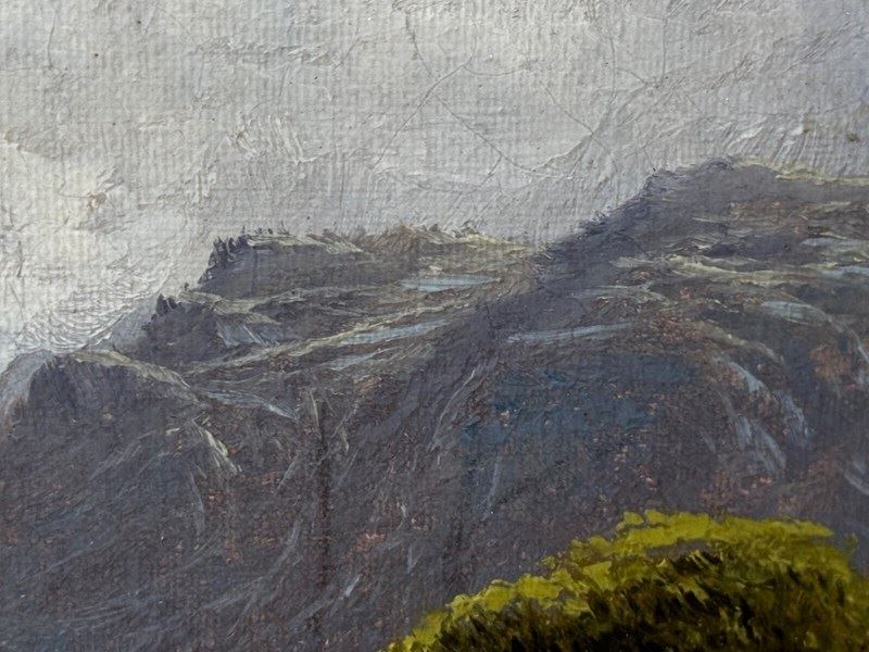 The reverse bears a Prestwich Fine Art label with handwritten details. Provenance is recorded as private collection from the vendor, Mitchells (Lake District auction house), and subsequently curated by Cheshire Antiques Consultant LTD. The original canvas retains a faint but legible maker’s stamp: “WINSOR & NEWTON / LONDON”, consistent with late 19th-century artists’ materials.