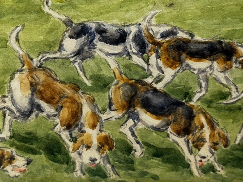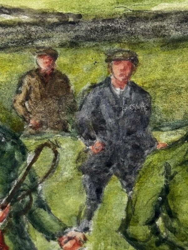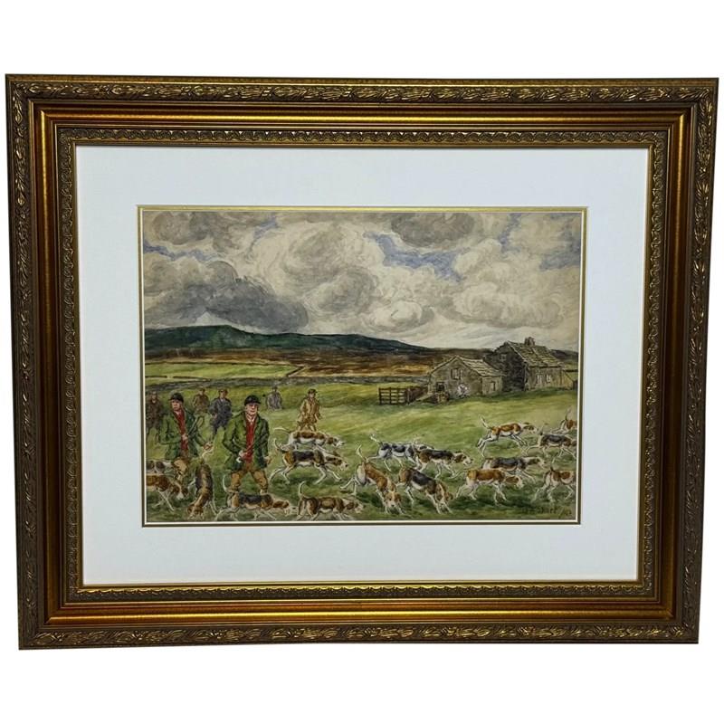Original 1943 Watercolour by George Anderson Short — The Badsworth Hunt on Foot