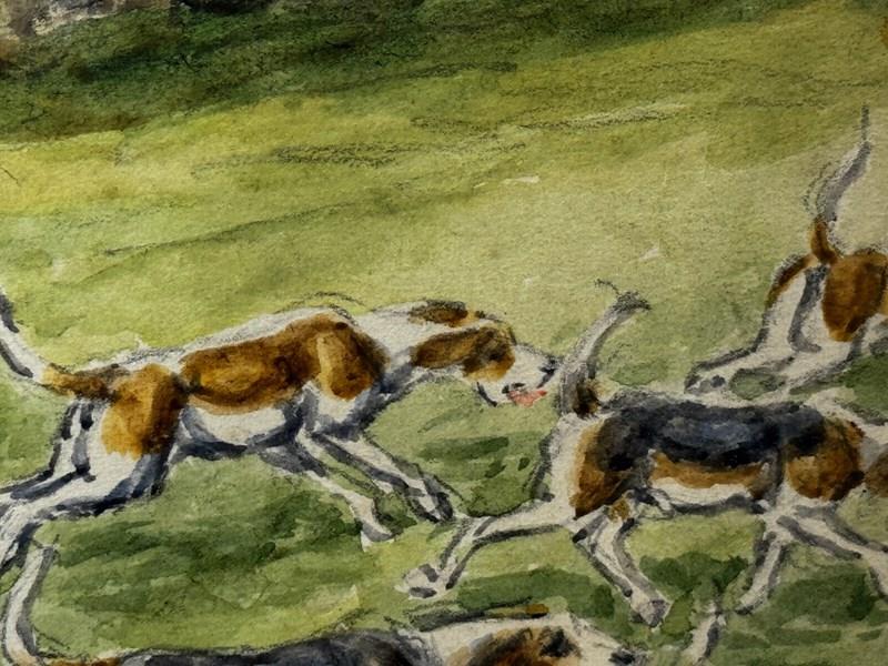 Watercolour By George Anderson Short — The Badsworth Hunt On Foot Yorkshire