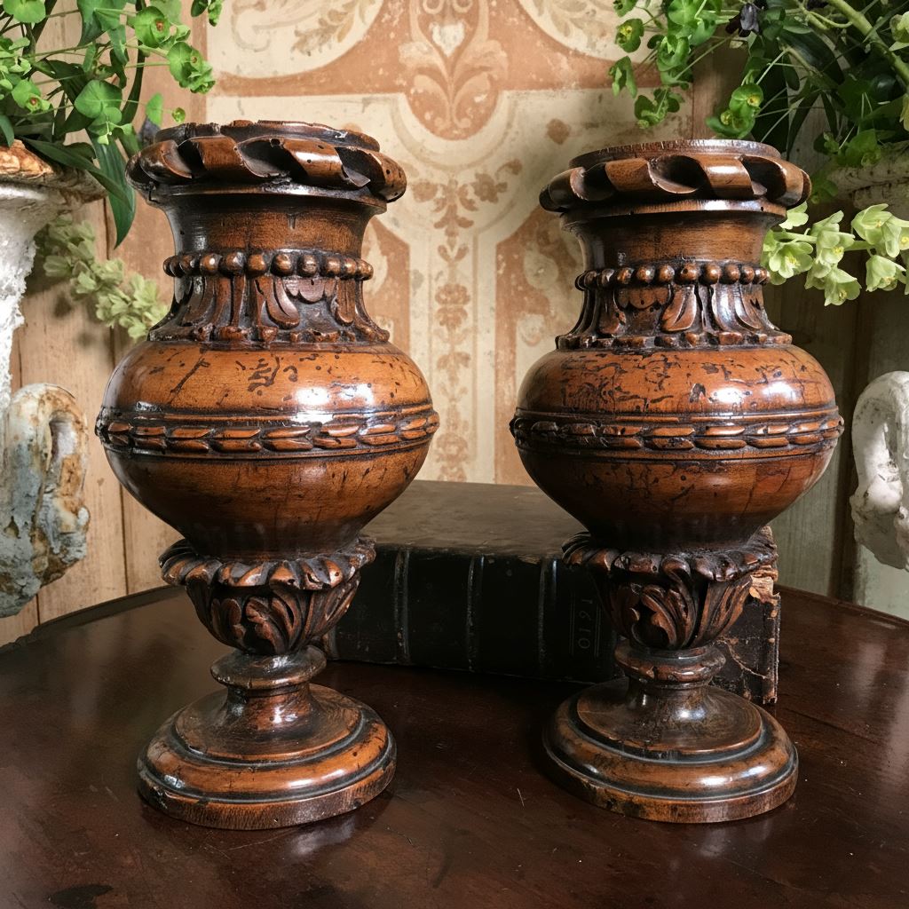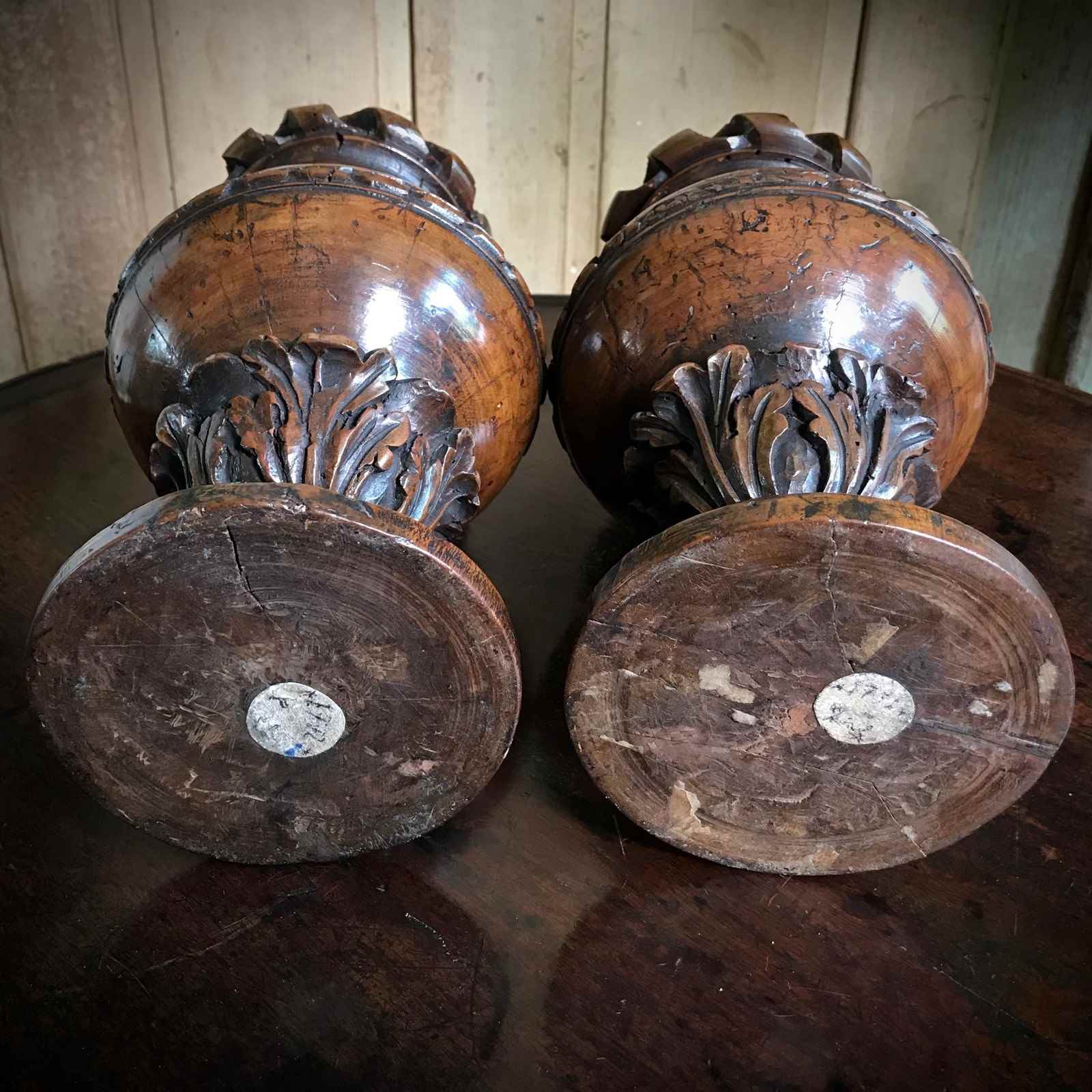 A Pair Of Italian Renaissance Turned And Carved Walnut Altar Vases C.1570–1600
