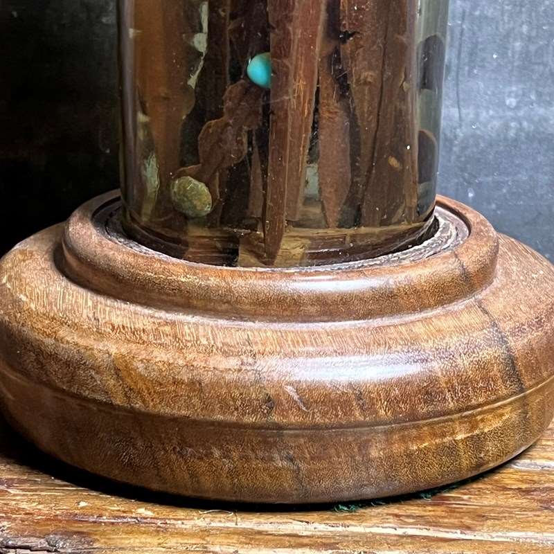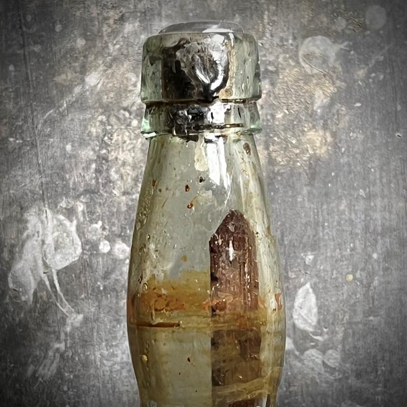 These protective bottles, known regionally as Gottesflasche or Spiritus Dei, were created across the Alpine and Central European regions and kept in homes as quiet expressions of faith and for household protection. Examples retaining their original liquid and internal structures are scarce, and this bottle has survived with a remarkable sense of serenity and presence.