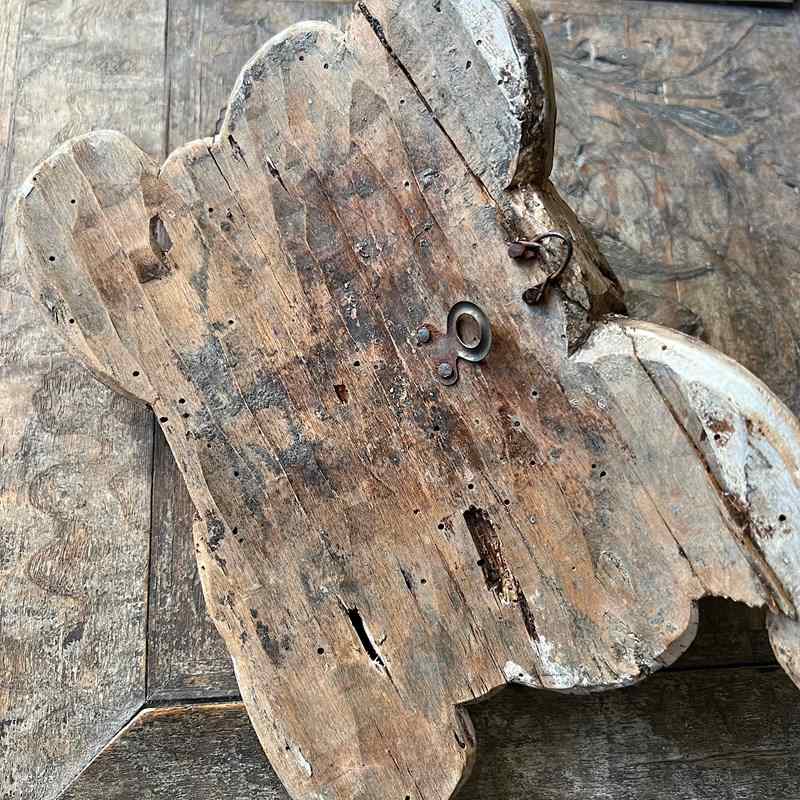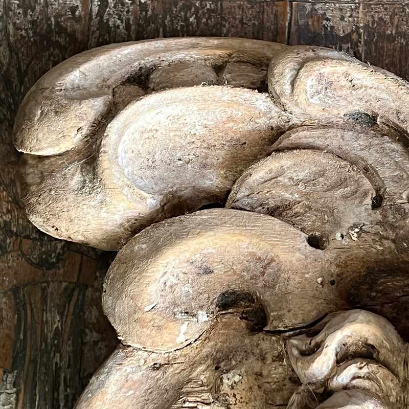 Traces of the original gesso remain within the recesses, evidence that the carving was once prepared for gilding or polychrome decoration. The reverse retains clear hand tooling and a gentle curvature, suggesting the piece was originally fixed to a curved architectural element such as an altar column or frame within a larger Baroque structure.