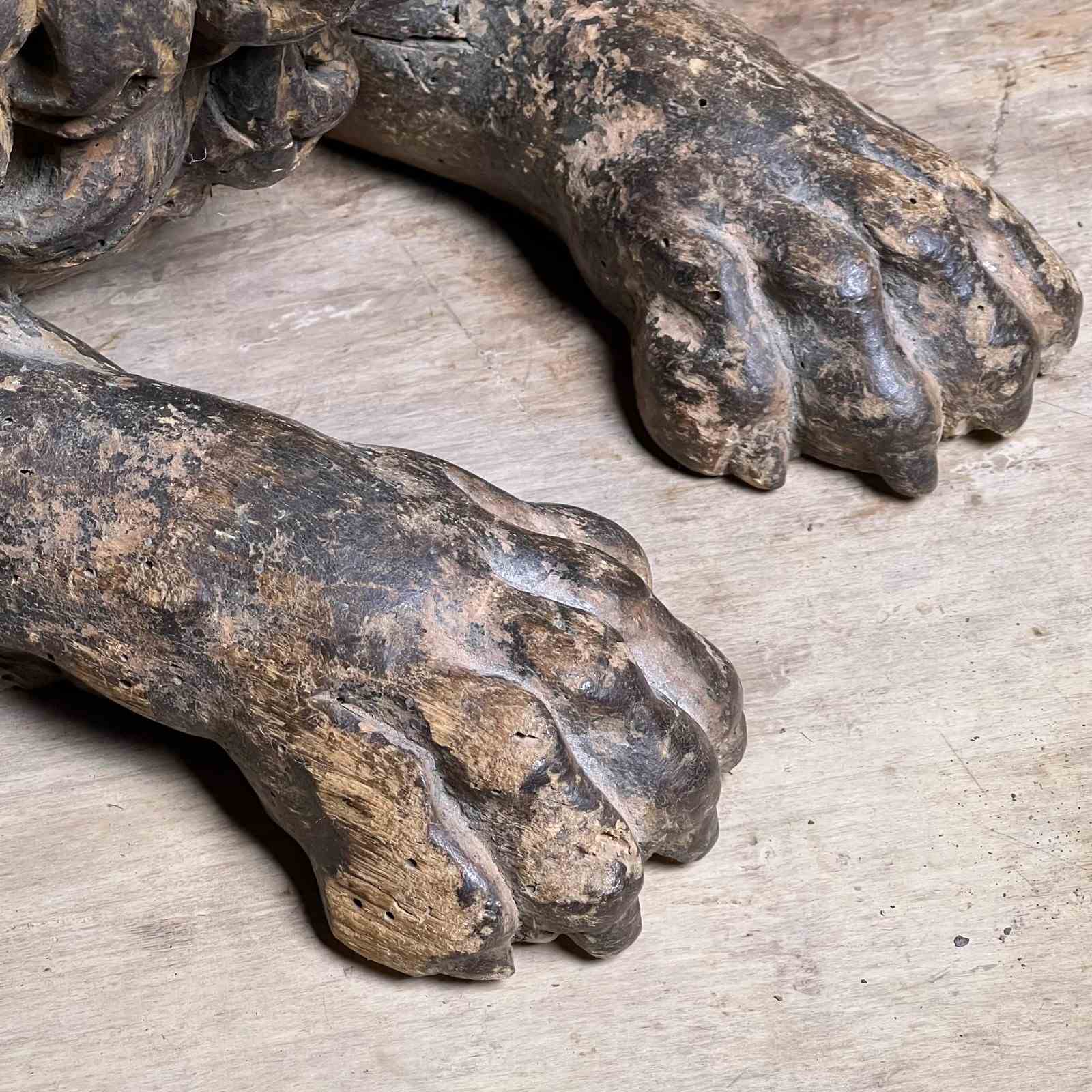 Italian Baroque Carved Walnut Lion Furniture Bearers, 17Th Century (C. 1650–1700