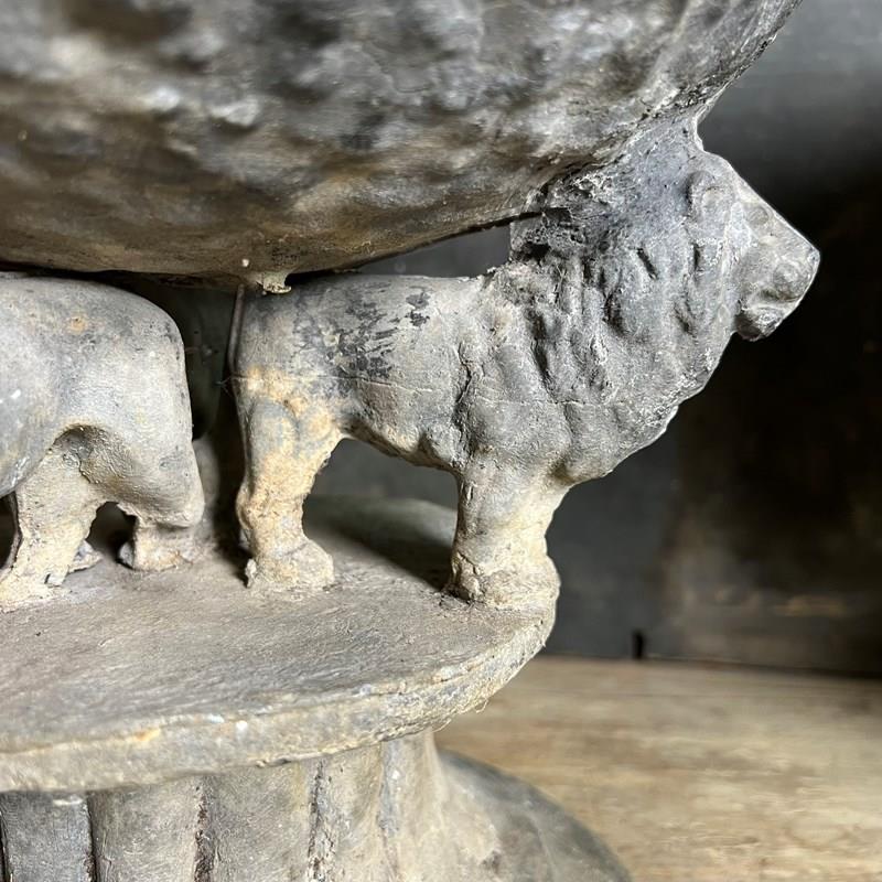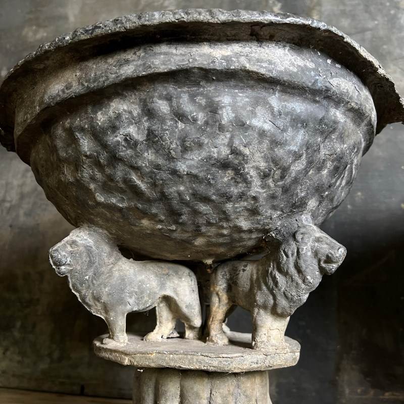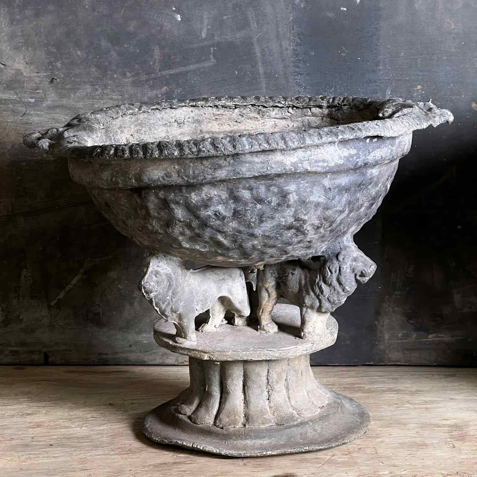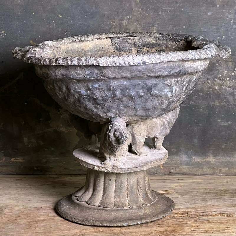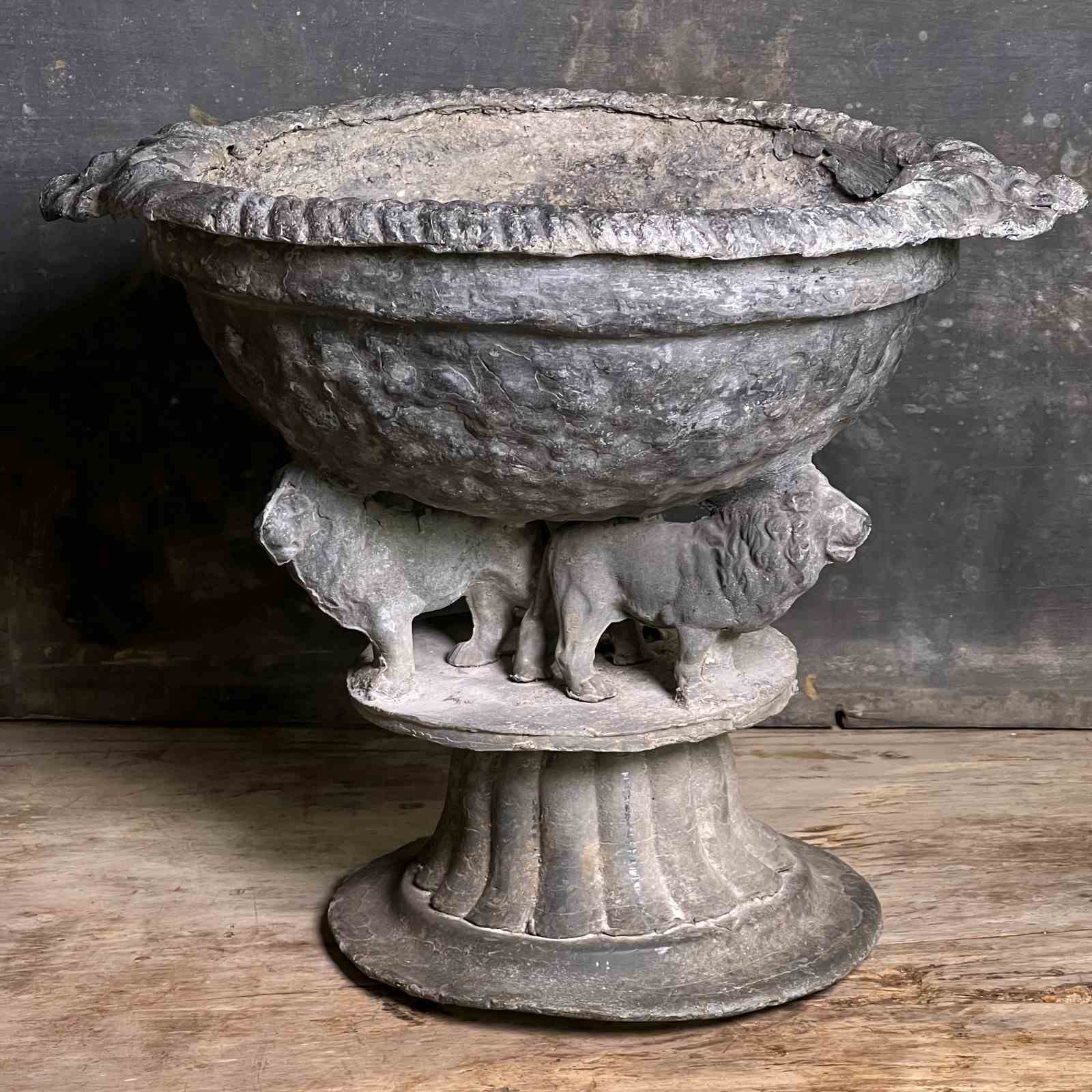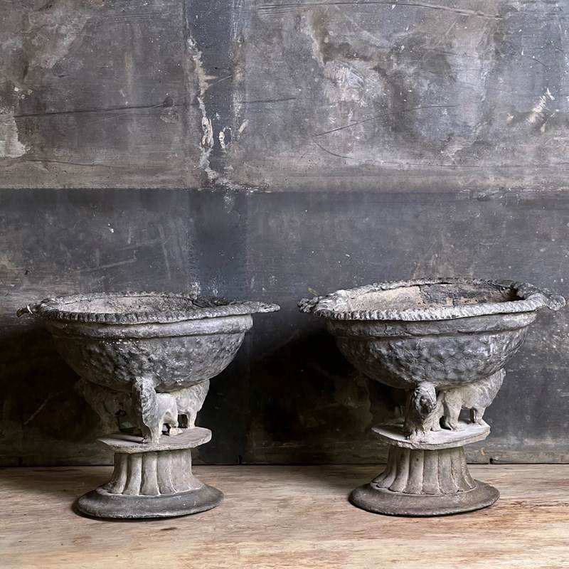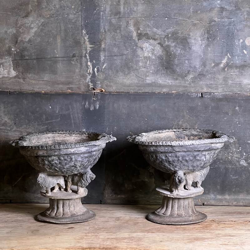 Pair Of Georgian Lead Urns With Lion Supports, England C.1820