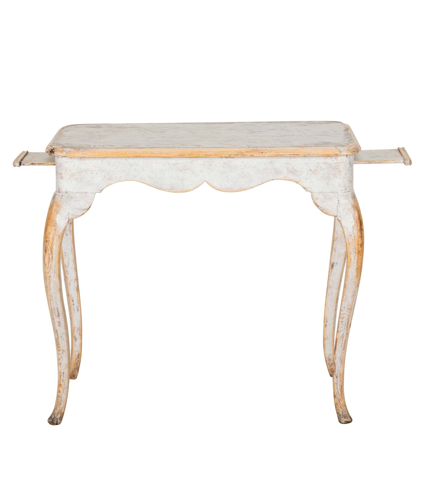 18th Century Swedish Rococo card table with decorative carved cabriolet legs and pull out trays used for candlesticks.