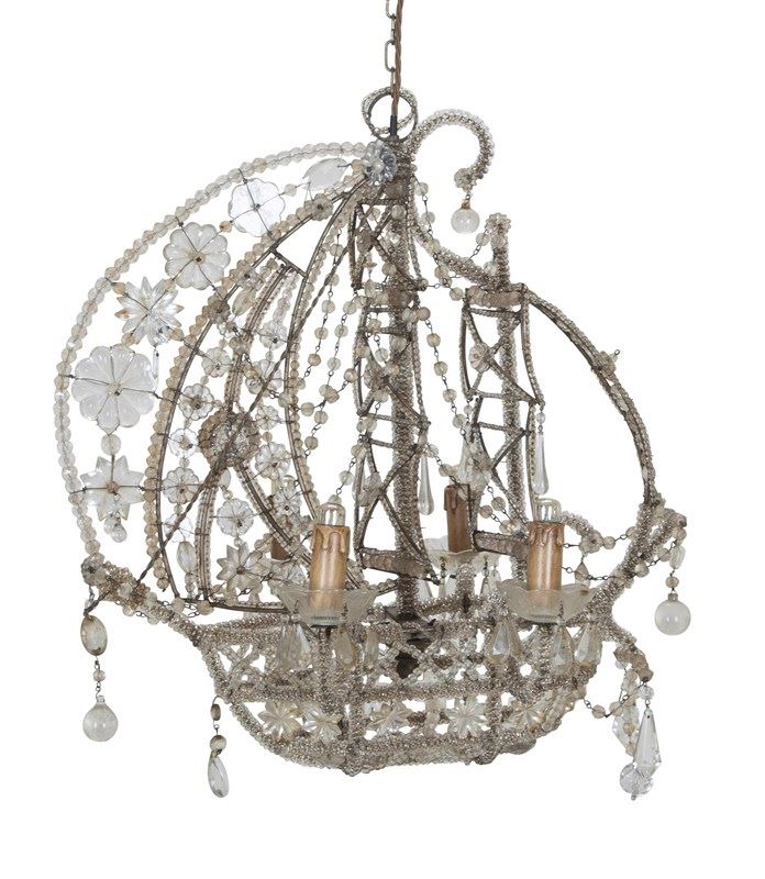 1940s Italian glass beaded chandelier in the form of a galleon.