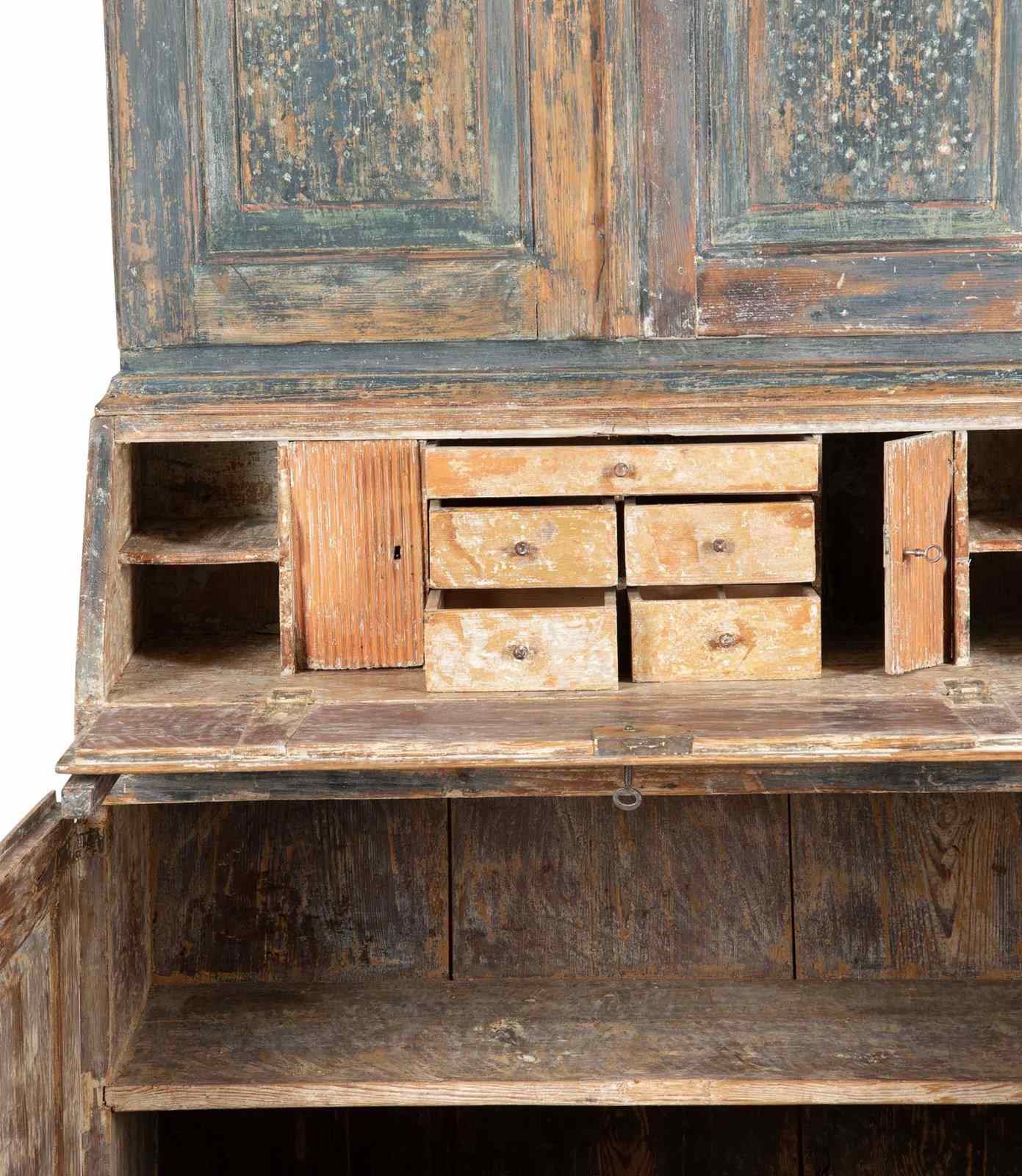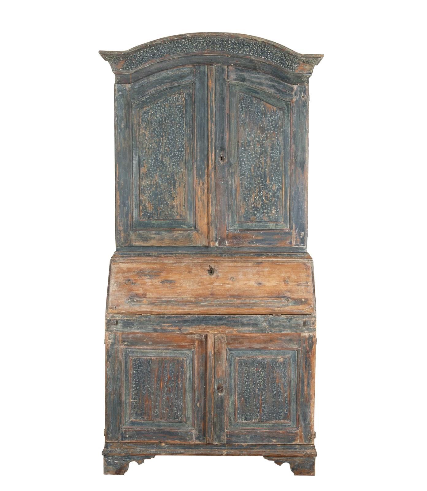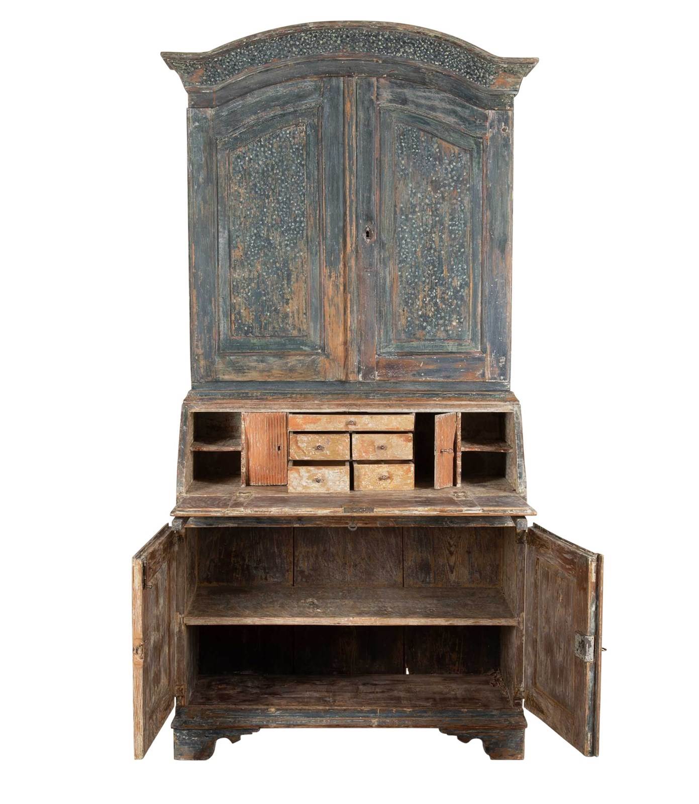 19Th Century Swedish Folk Art Secretary In Original Paint