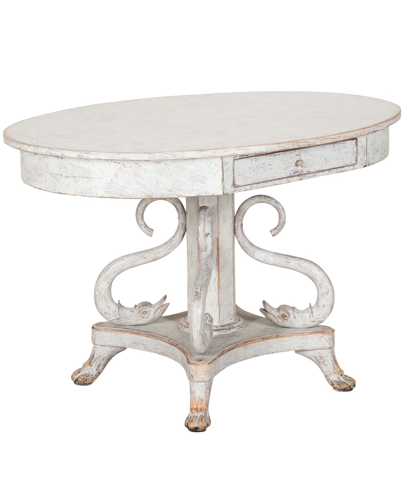 19th Century Swedish oval table with one single drawer.