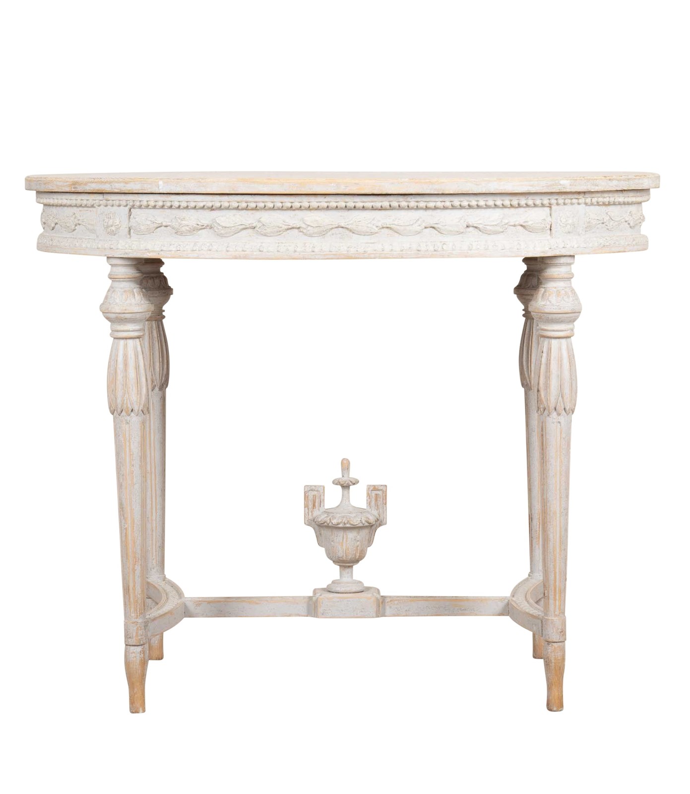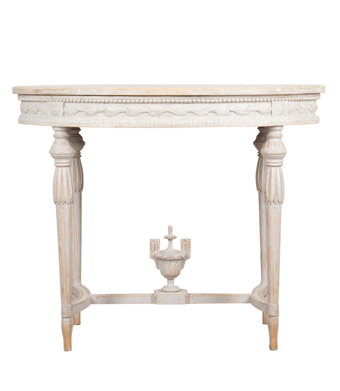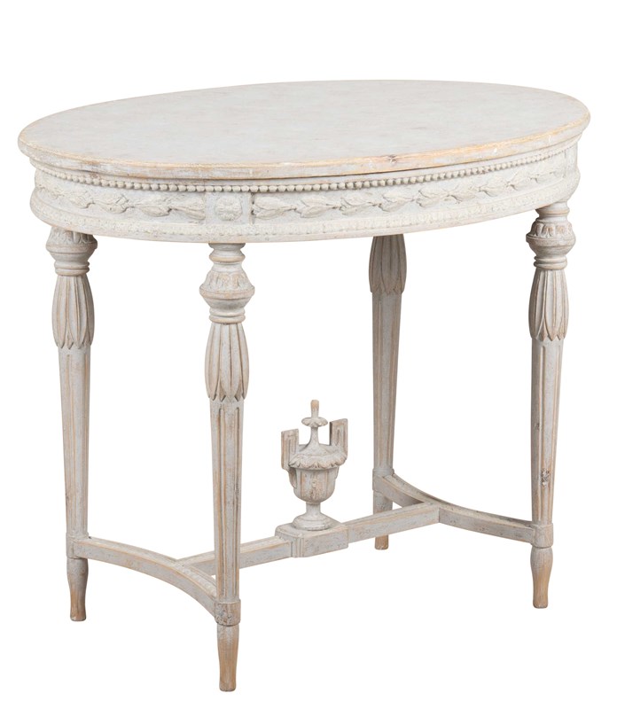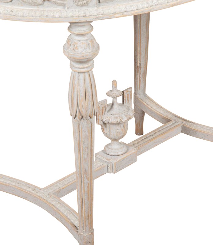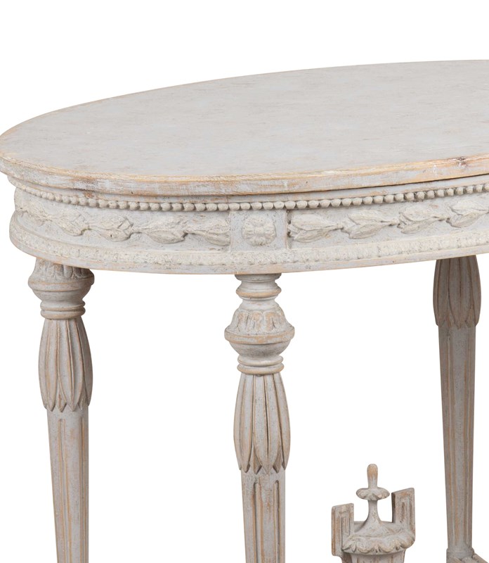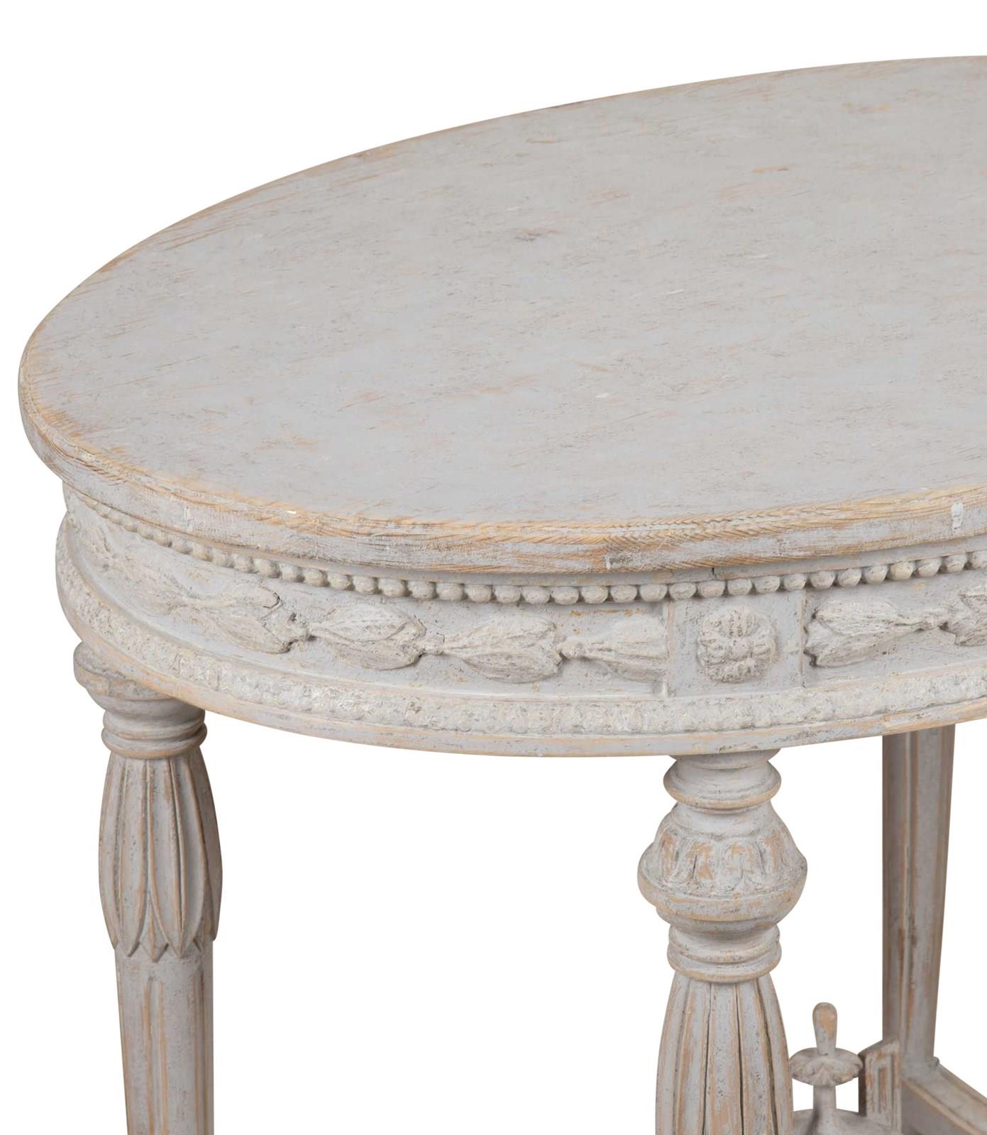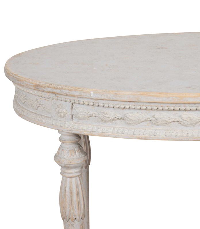 20Th Century Swedish Gustavian Style Oval Table With Carved Decorative Detailing