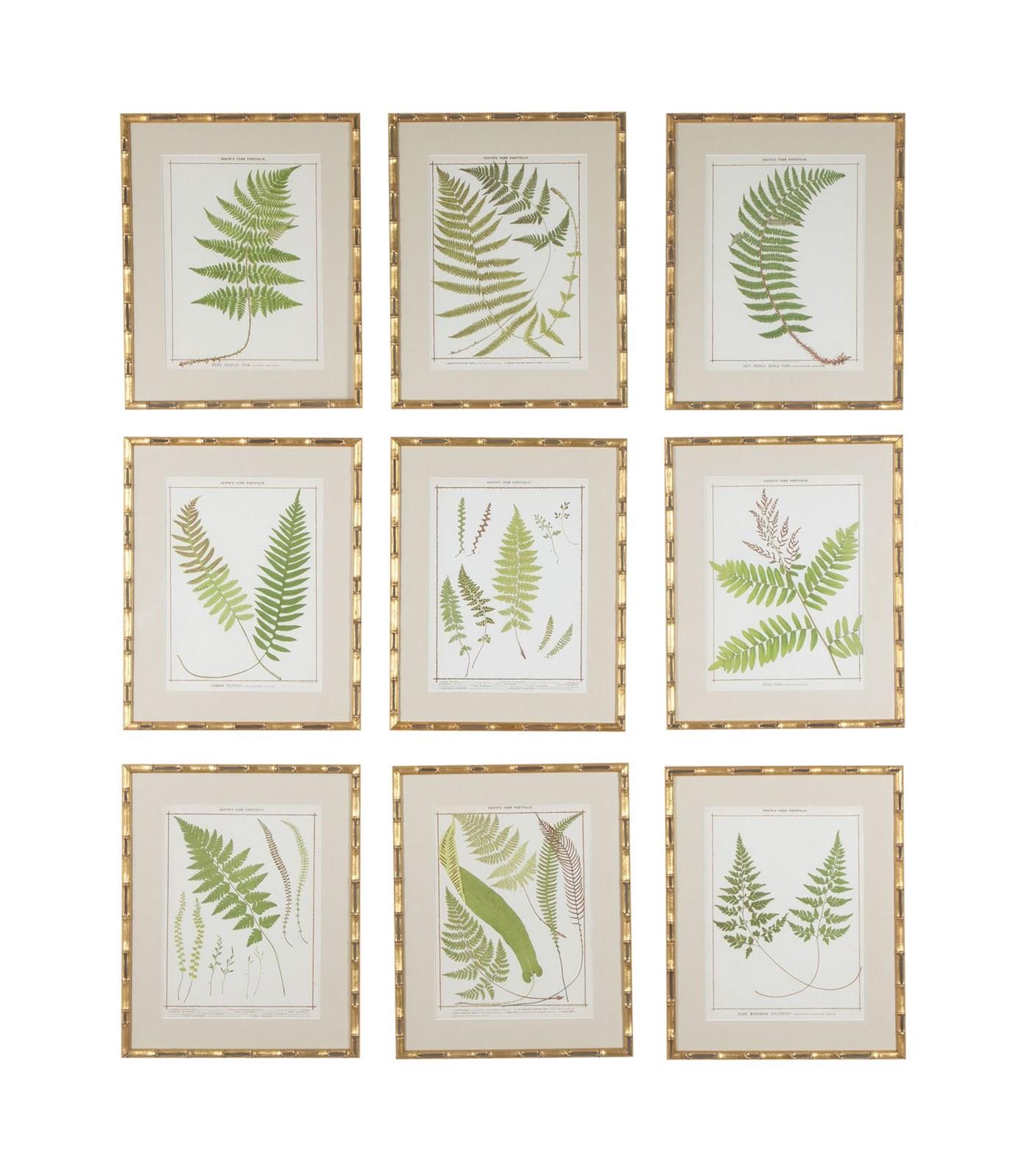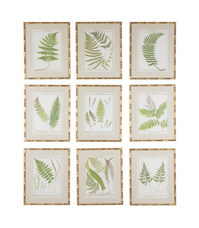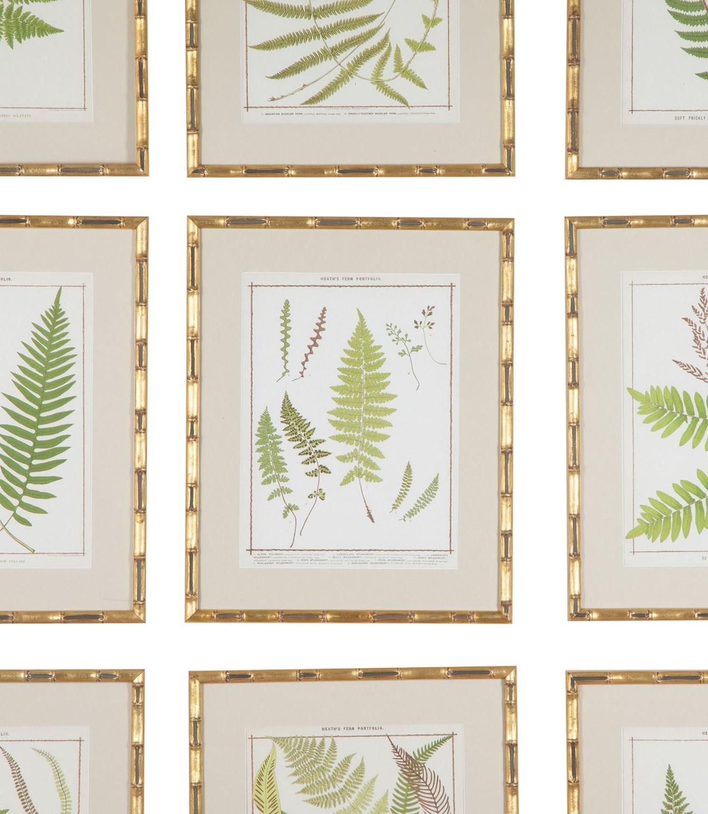 Collection of nine chromolithographs of life-size 19th Century British ferns by Francis George Heath.
