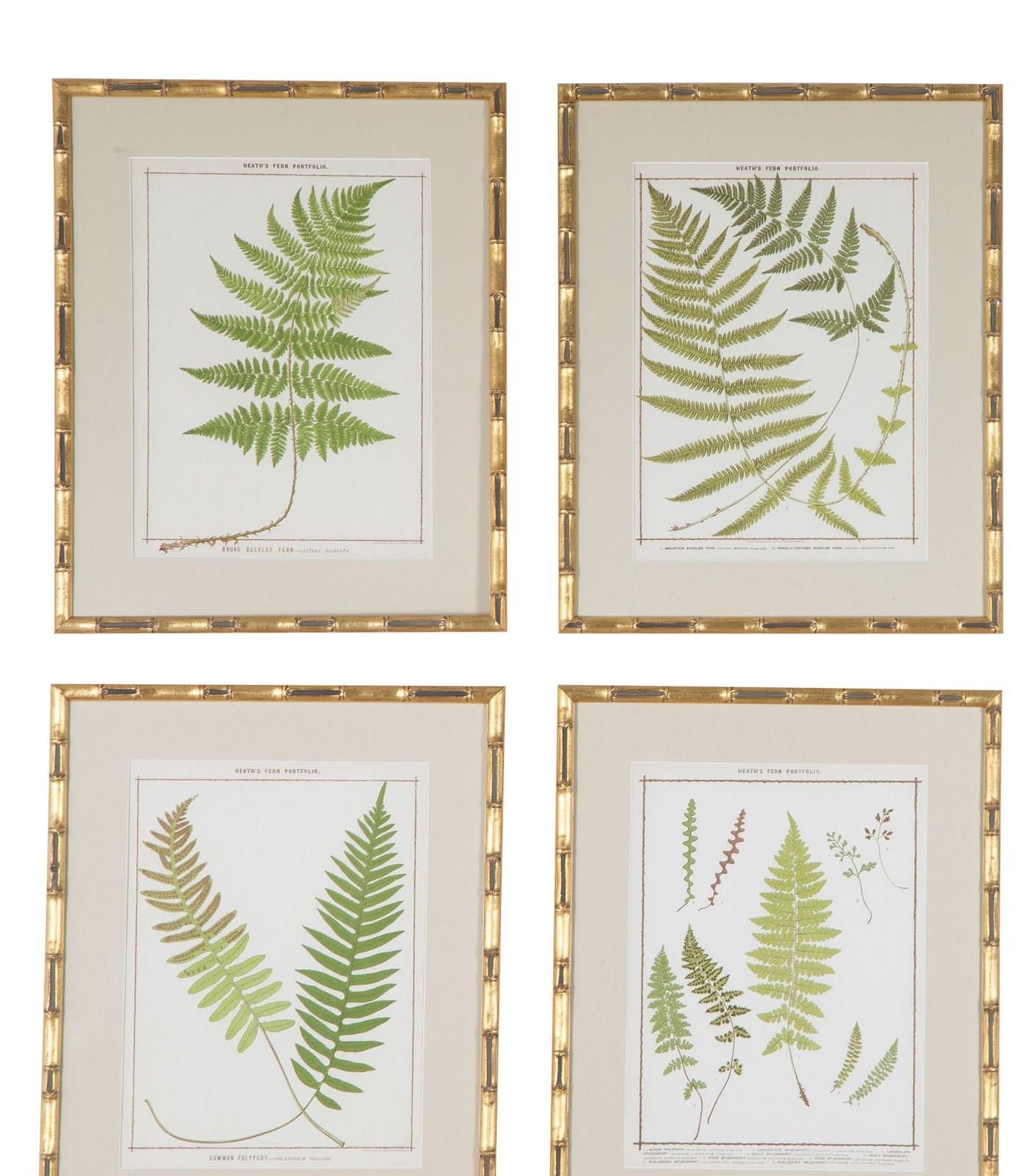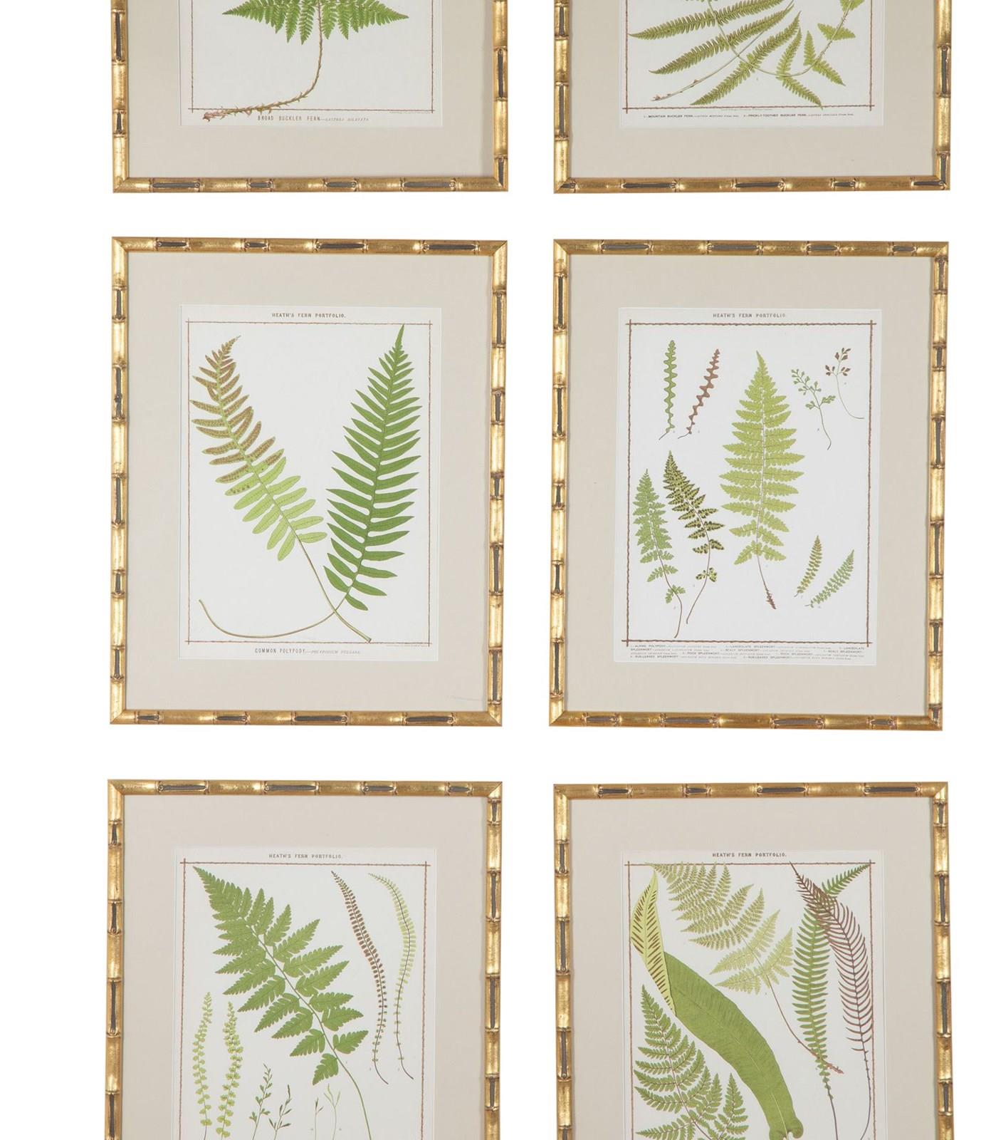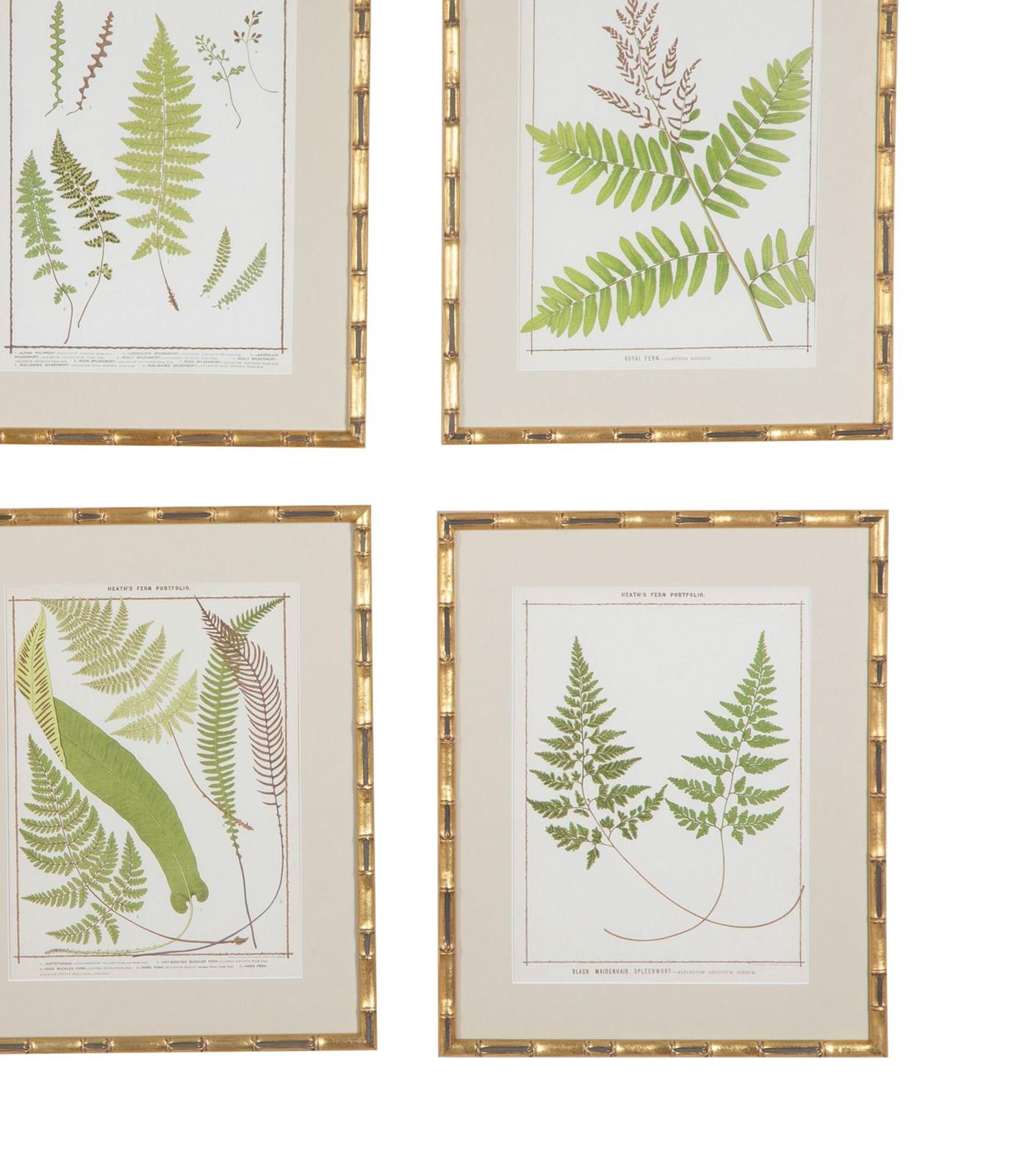 Collection of nine chromolithographs of life-size 19th Century British ferns by Francis George Heath.