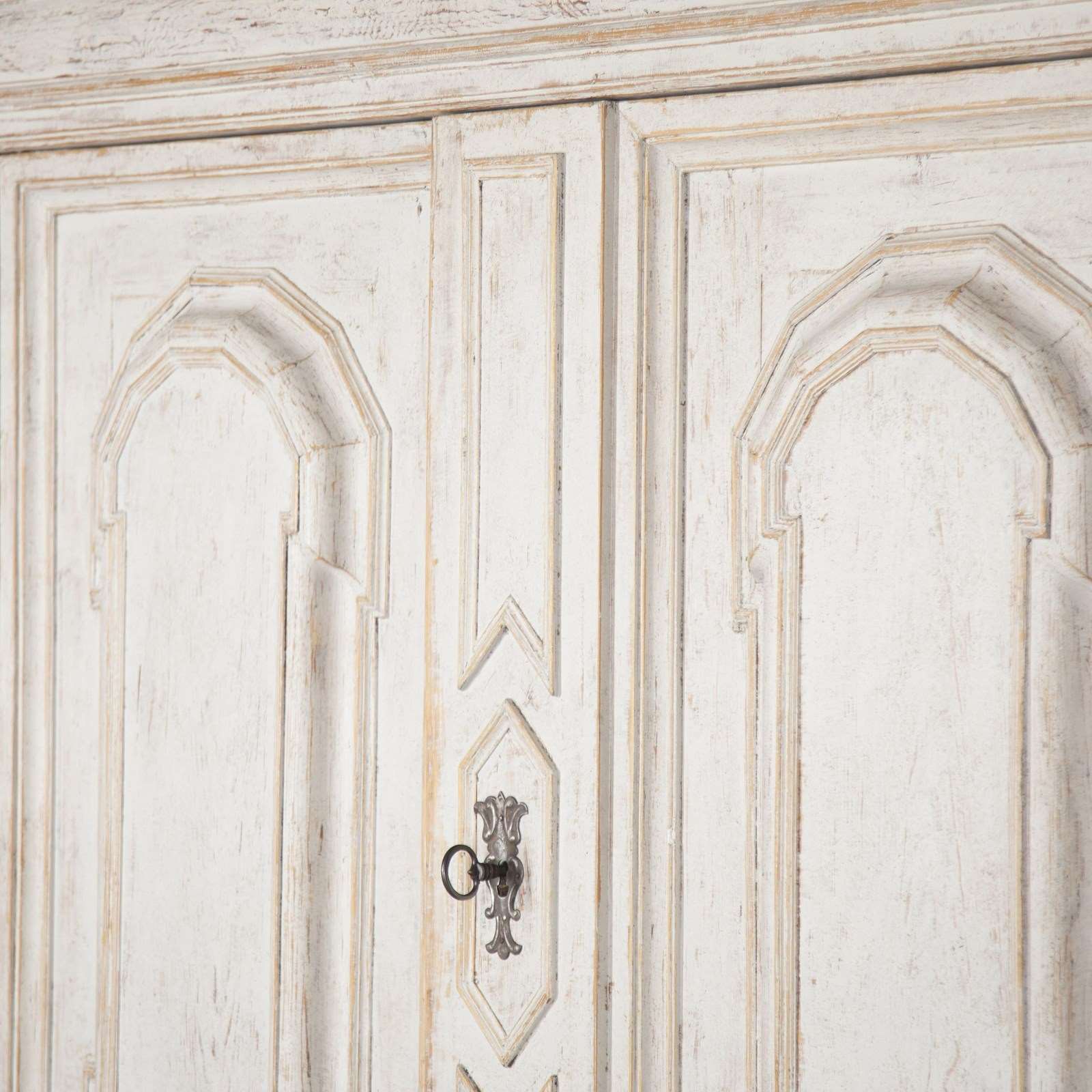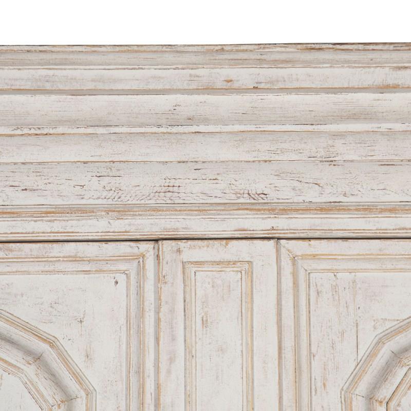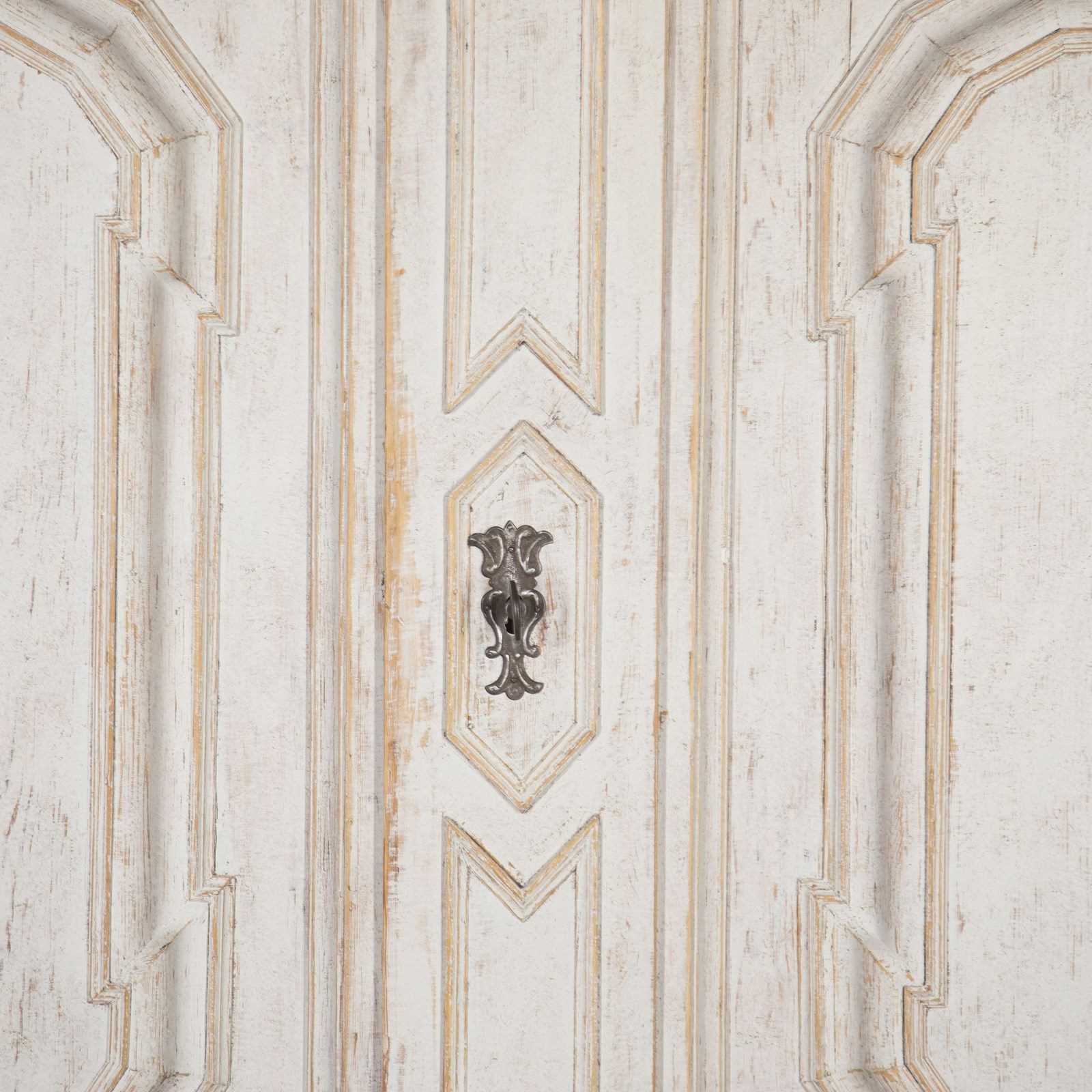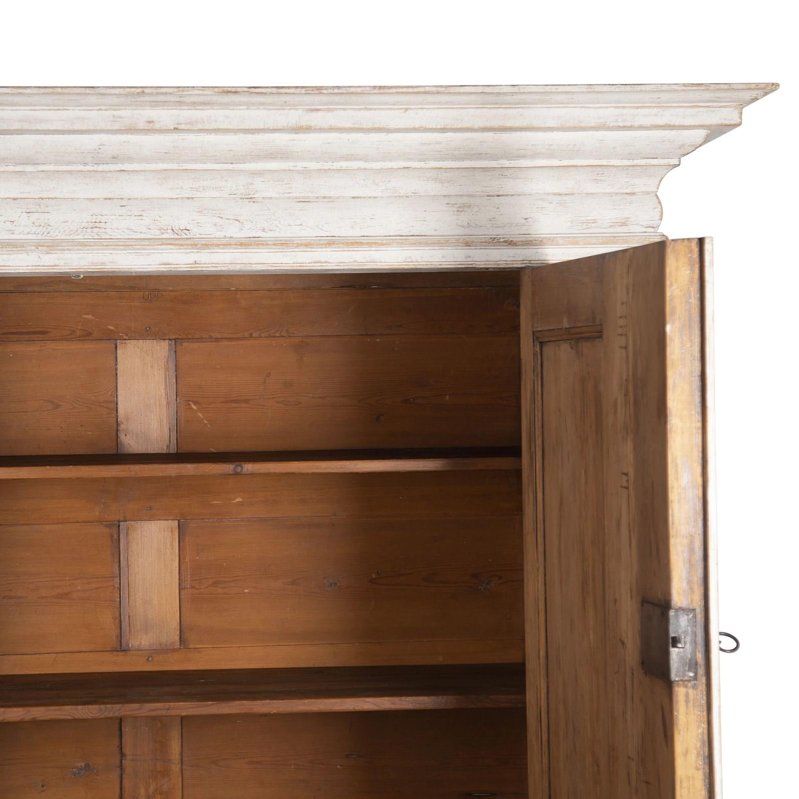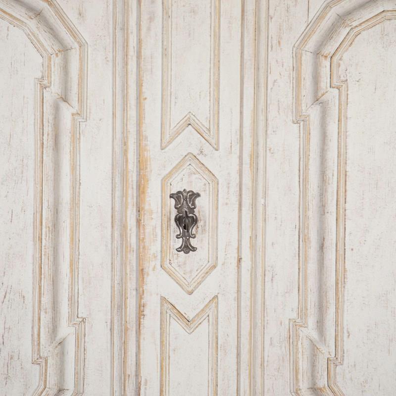With a deeply carved pediment and decorative detailing on the doors. Below sit two drawers with their original loose pear-shaped feet.