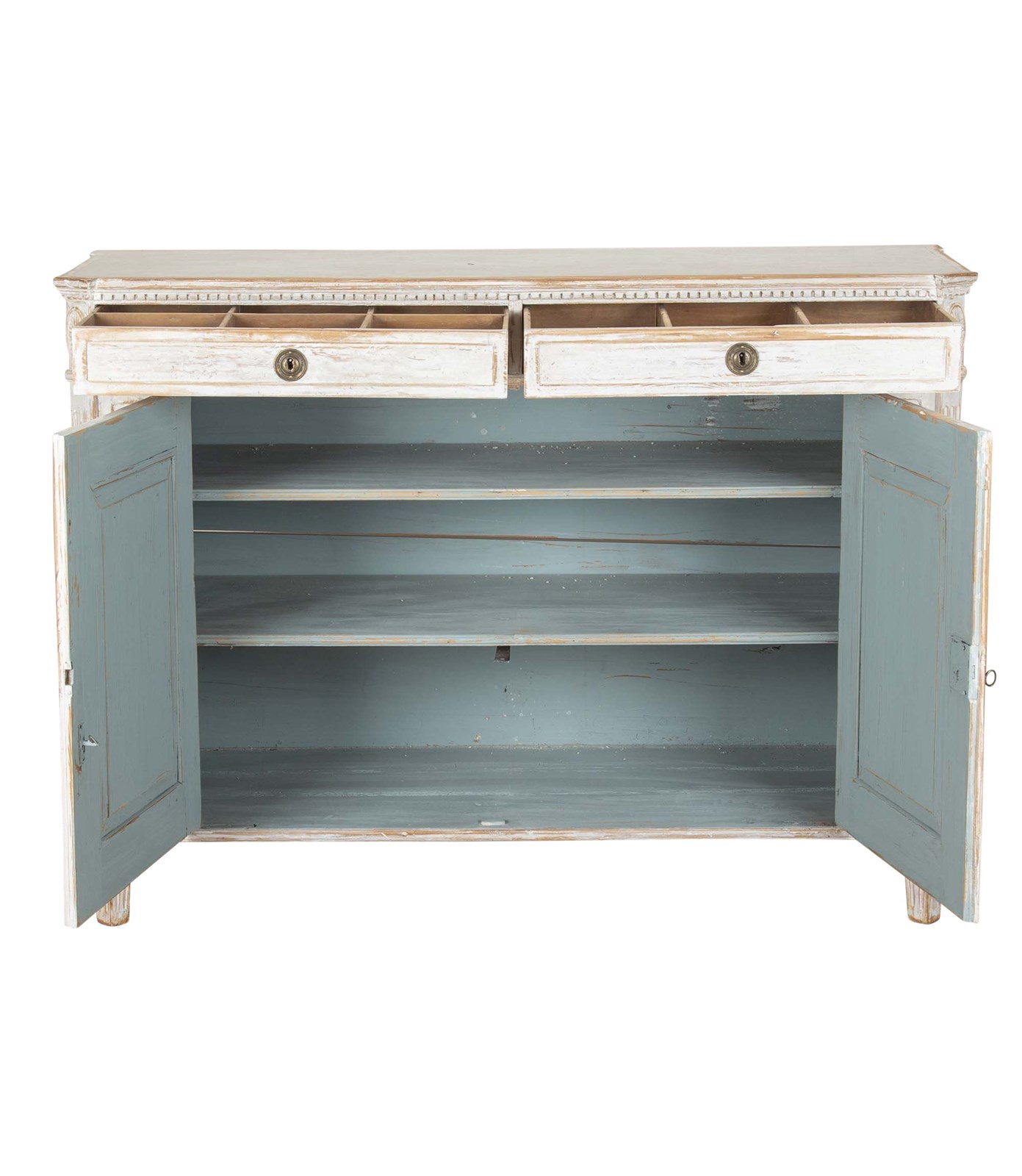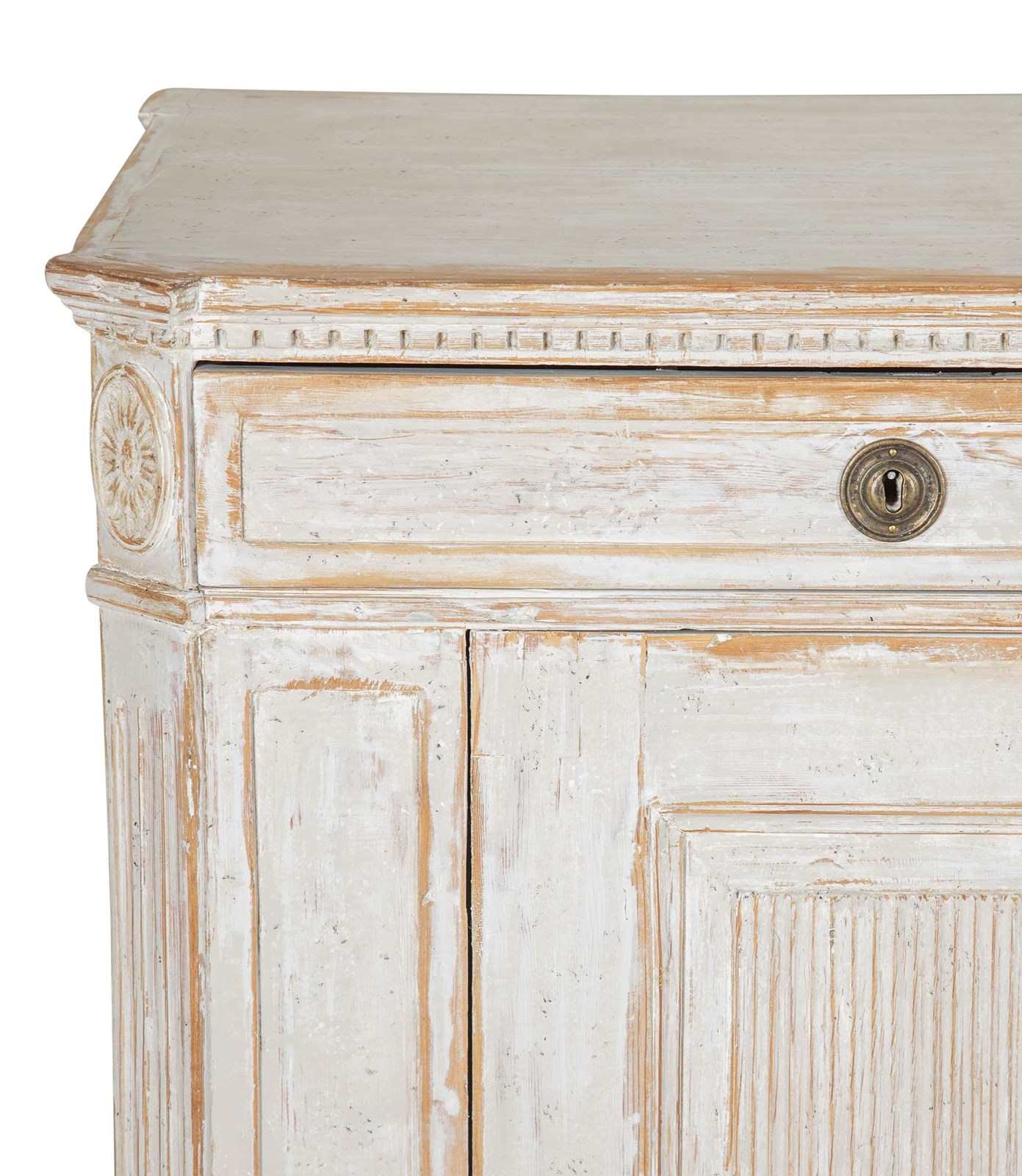With two doors with carved reeded detailing, opening to useful storage.