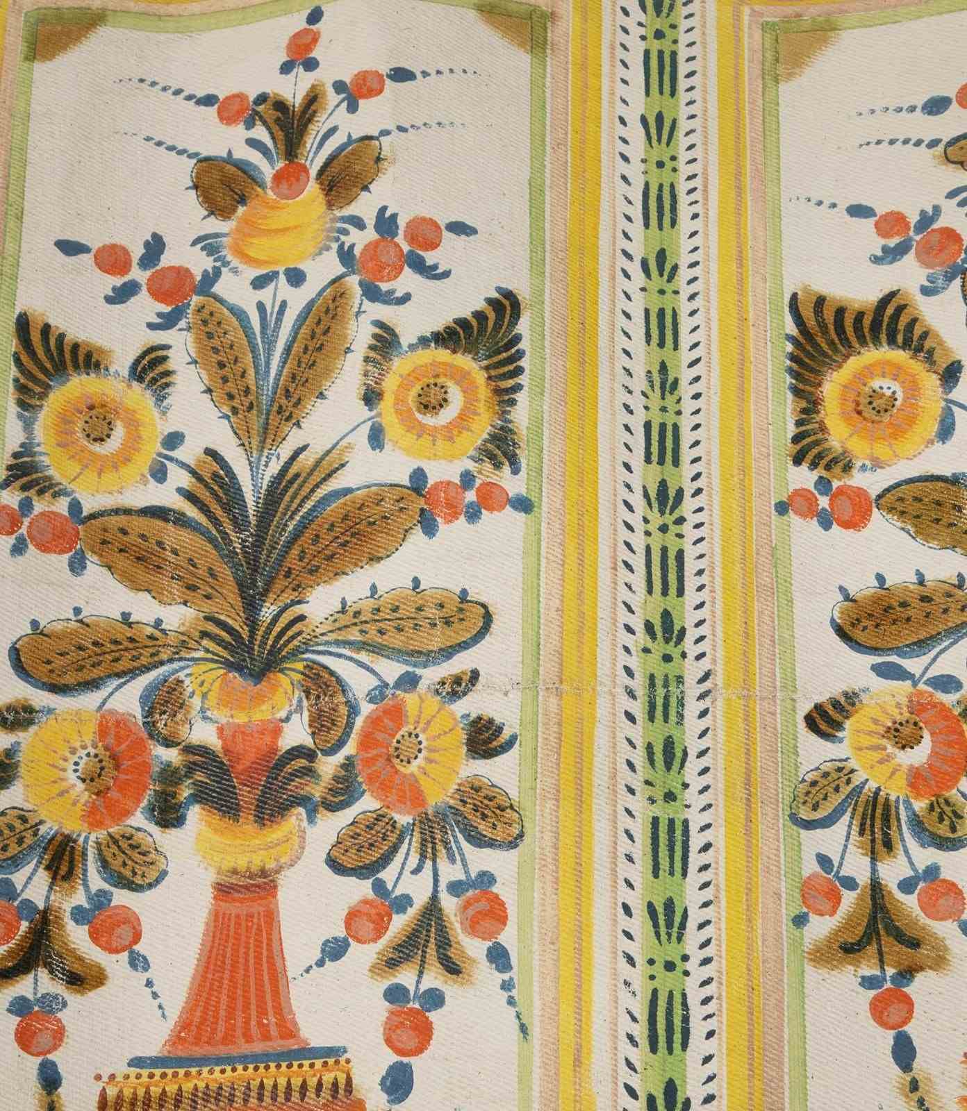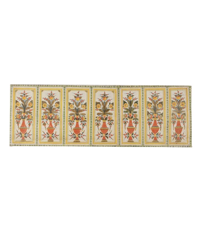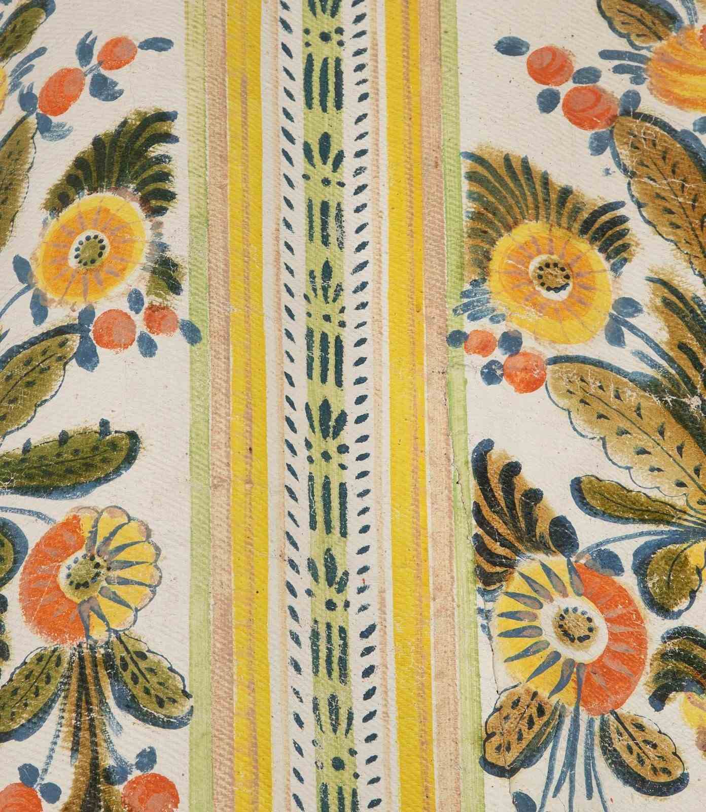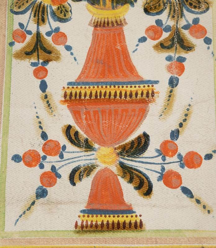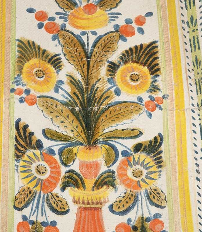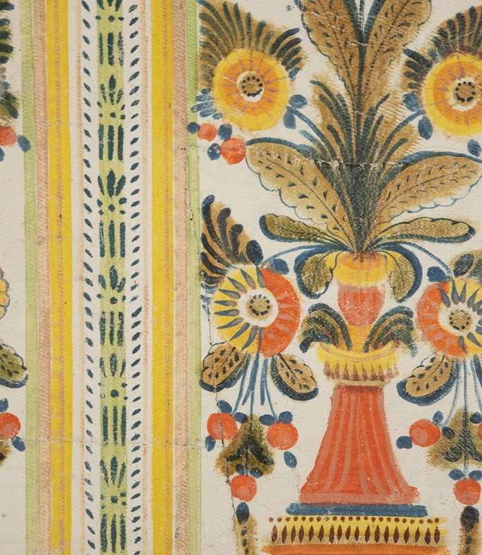 Depicting urns with flowers and fabulous colours. Originally would have been used to line a wall in a Swedish home.