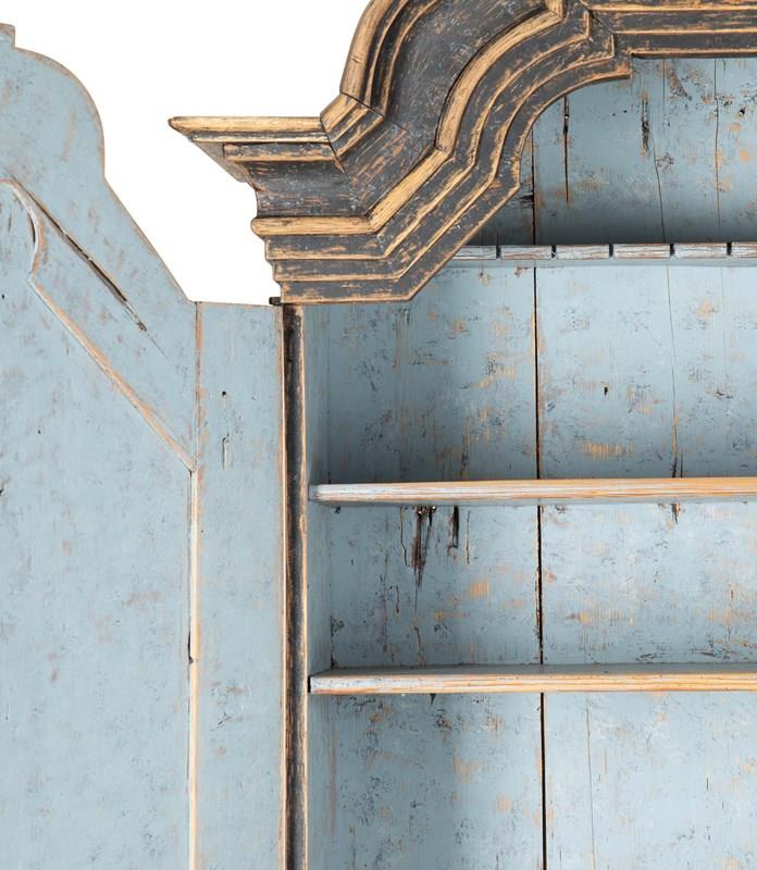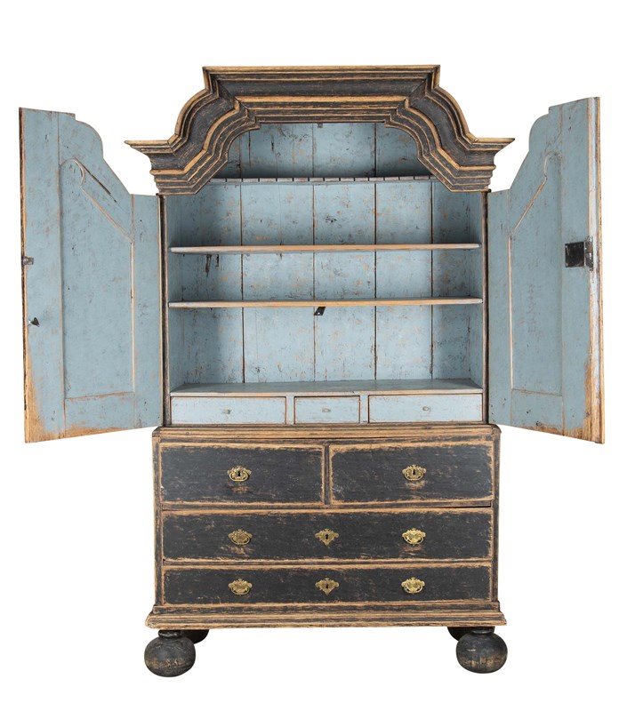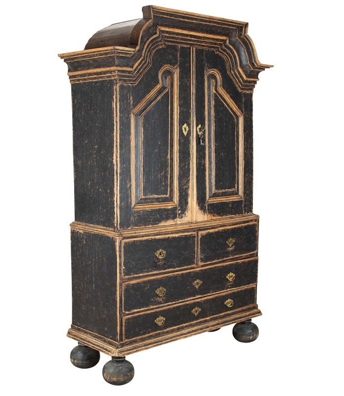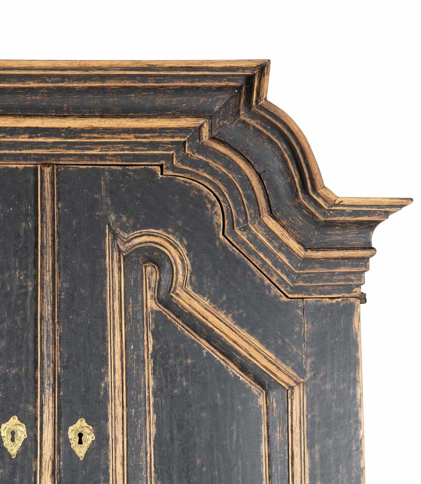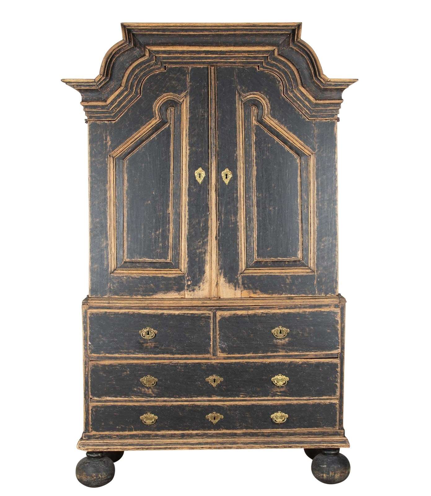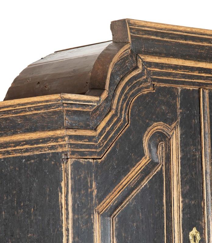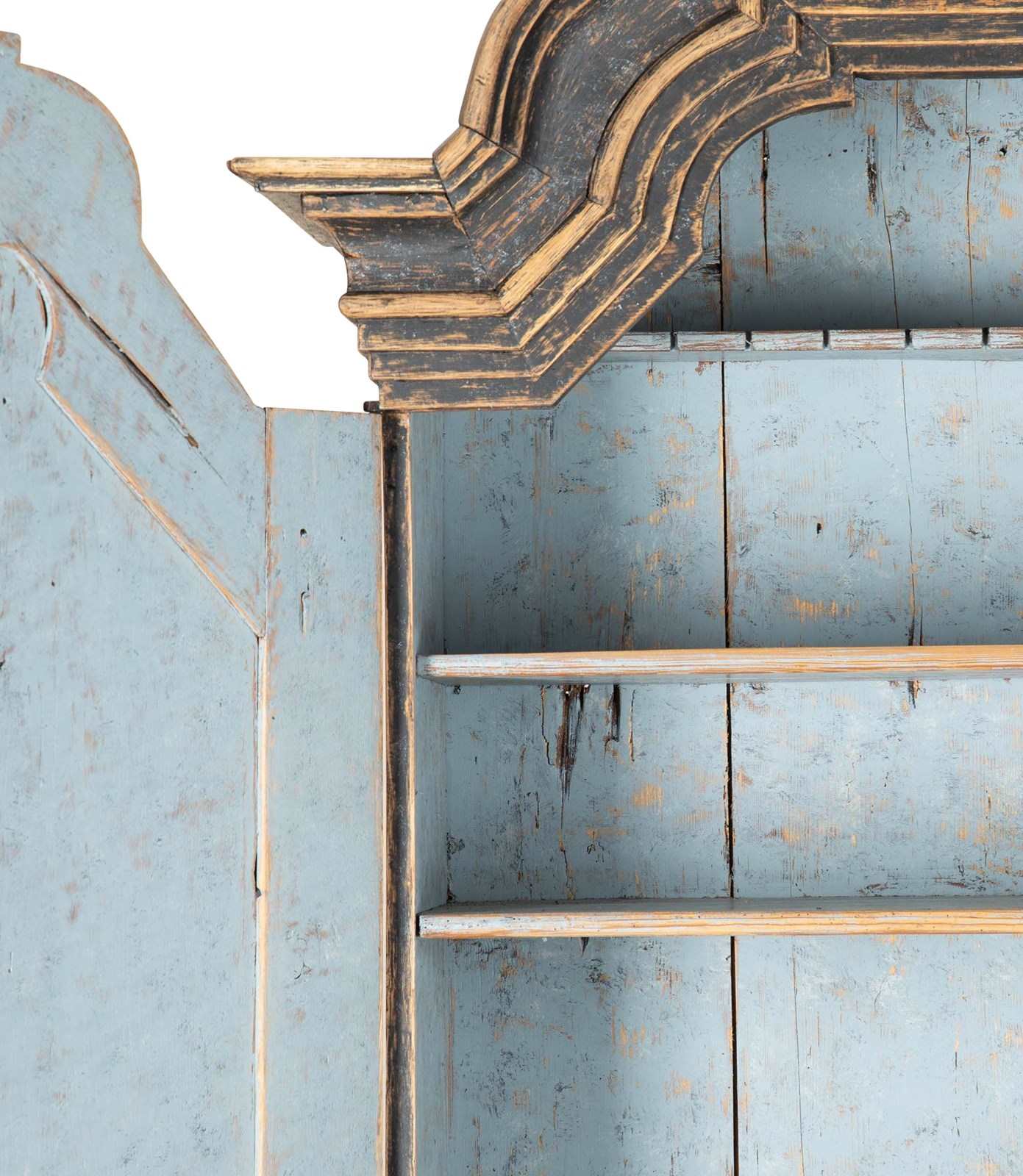 Late 18th Century Swedish Rococo cabinet with unusual carved pediment.