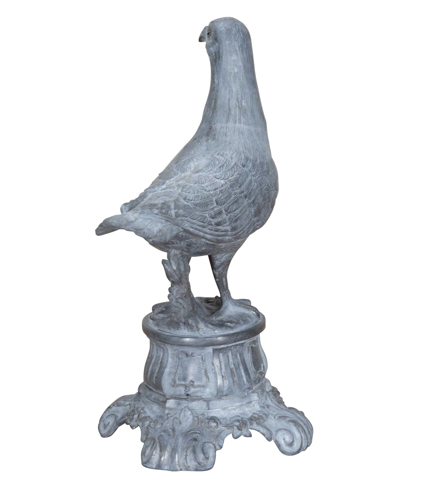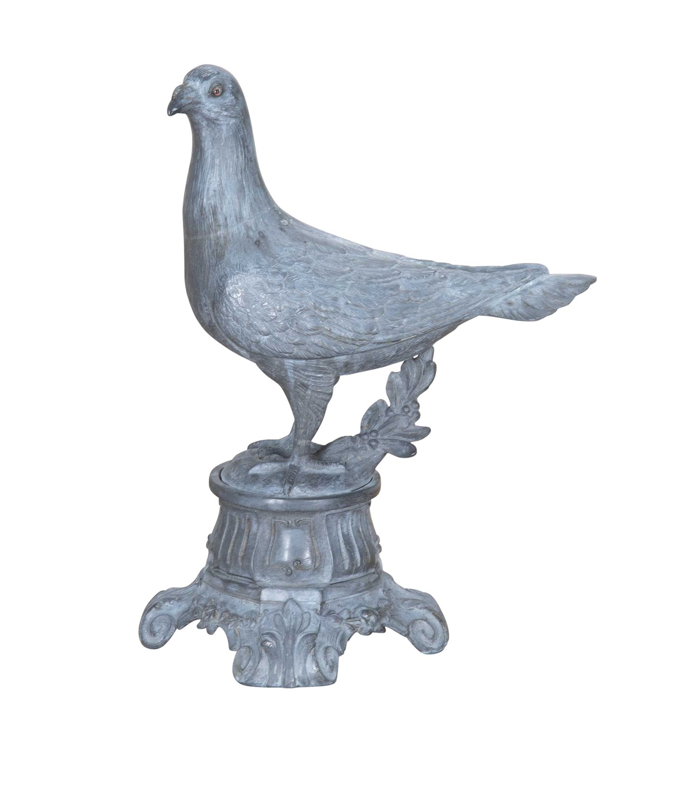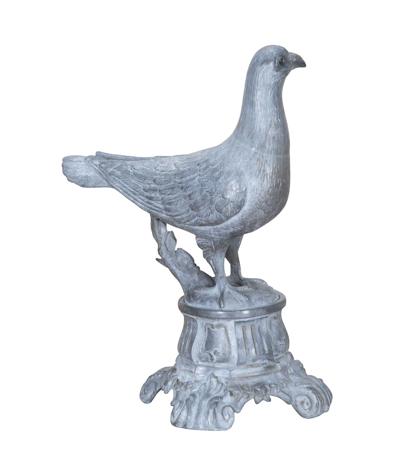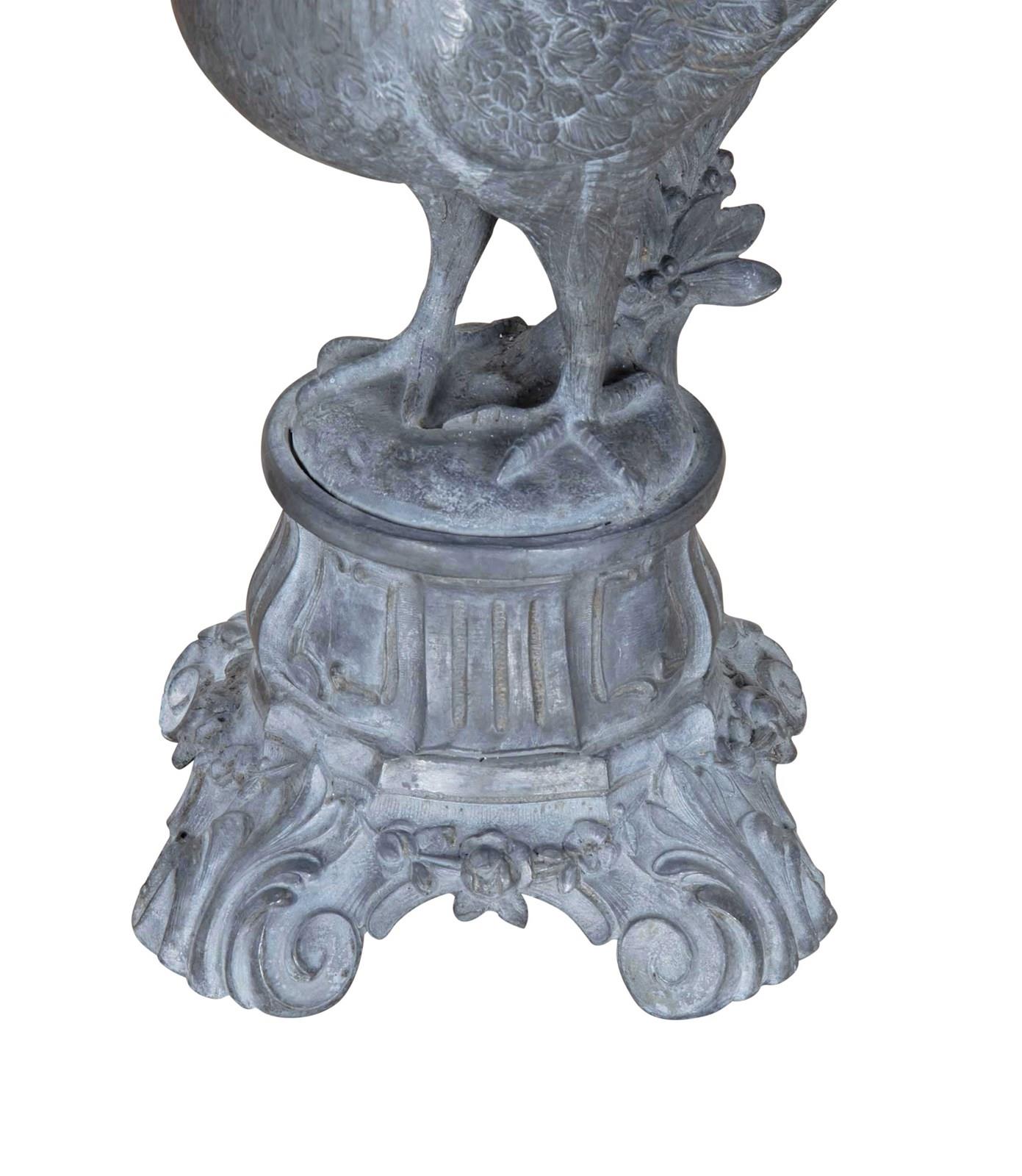 Late 19th Century French decorative metal pigeon on decorative metal base.