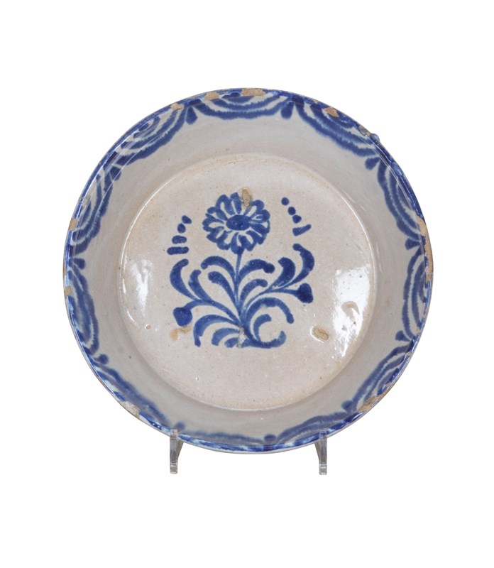 Late 19Th Century Spanish Blue And White Fajalauza Pottery Bowl