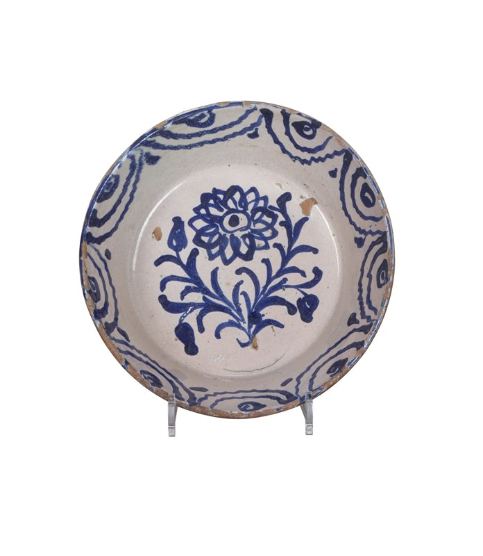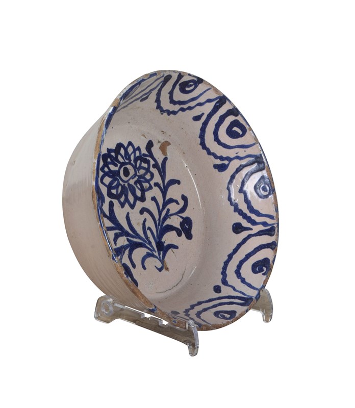 Late 19th Century Spanish blue and white Fajalauza pottery bowl from Granada.