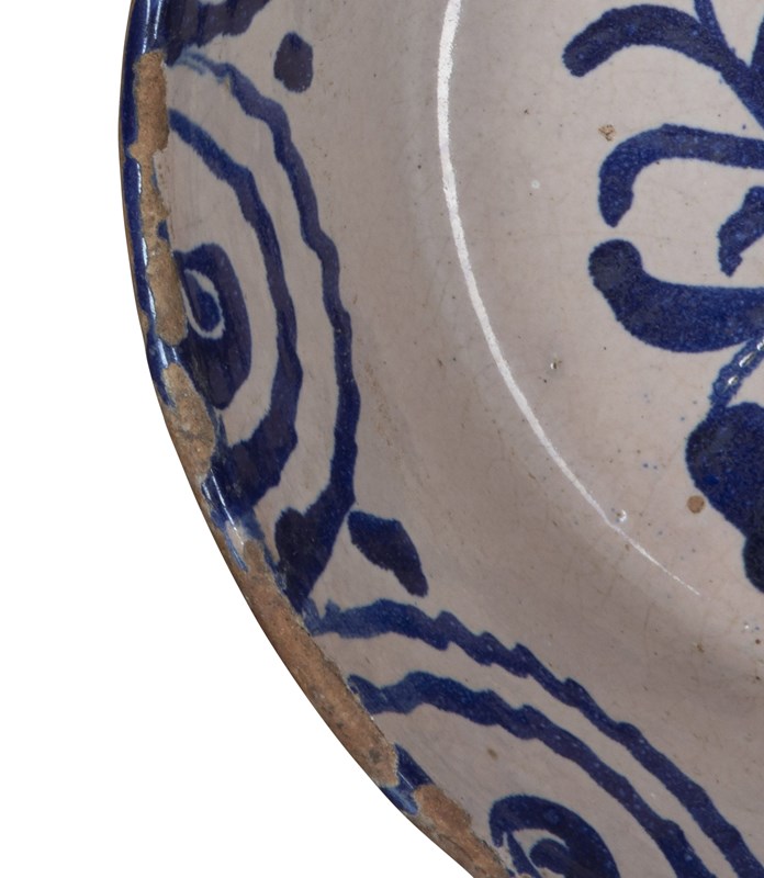 Late 19Th Century Spanish Blue And White Fajalauza Pottery Bowl