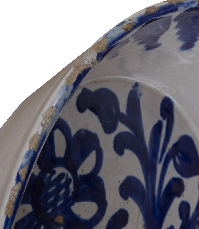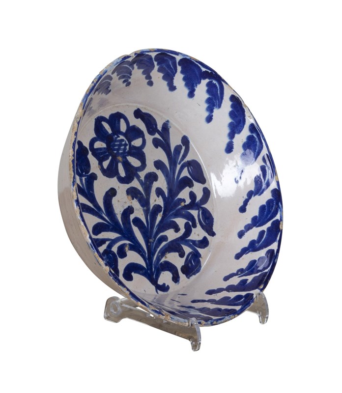 Late 19Th Century Spanish Blue And White Fajalauza Pottery Bowl