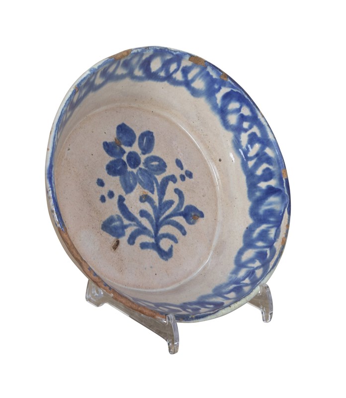 Late 19Th Century Spanish Blue And White Fajalauza Pottery Bowl