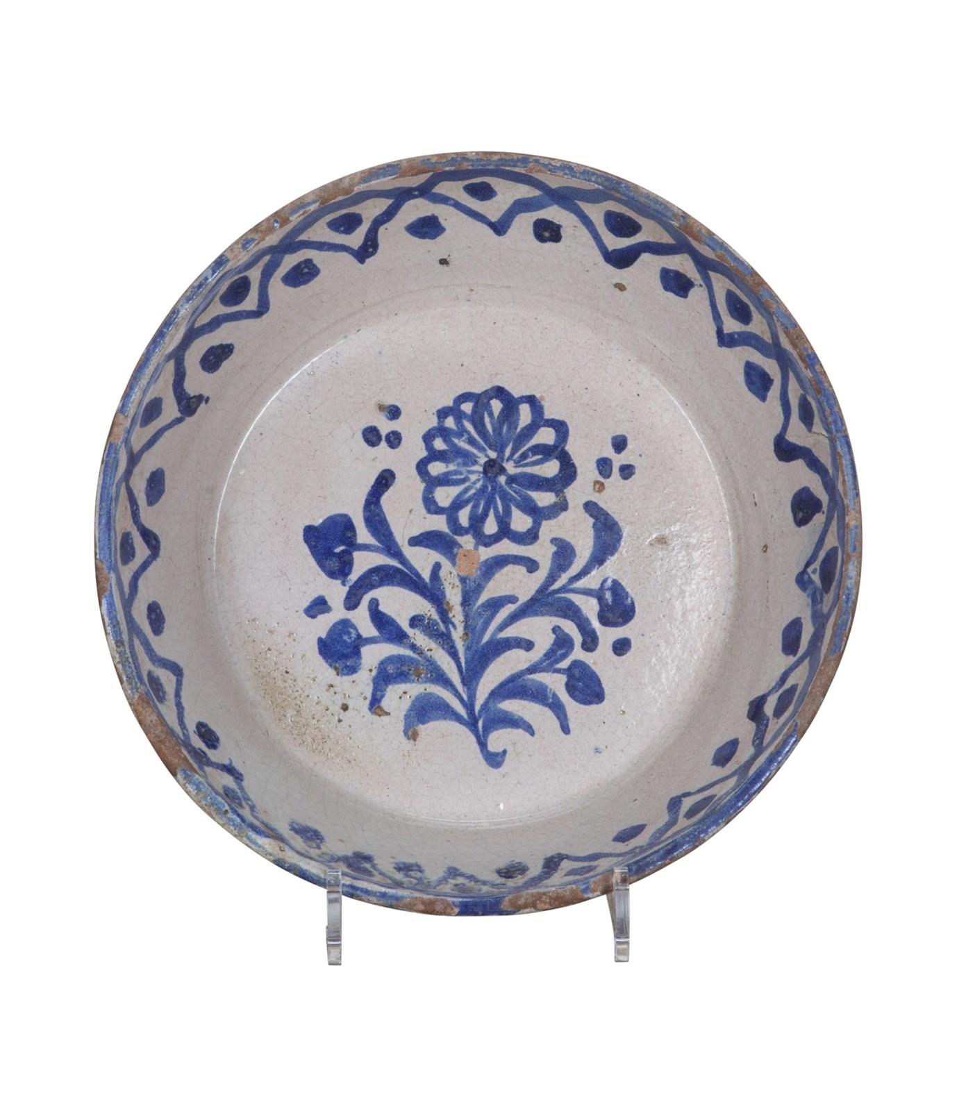 Late 19Th Century Spanish Blue And White Fajalauza Pottery Bowl
