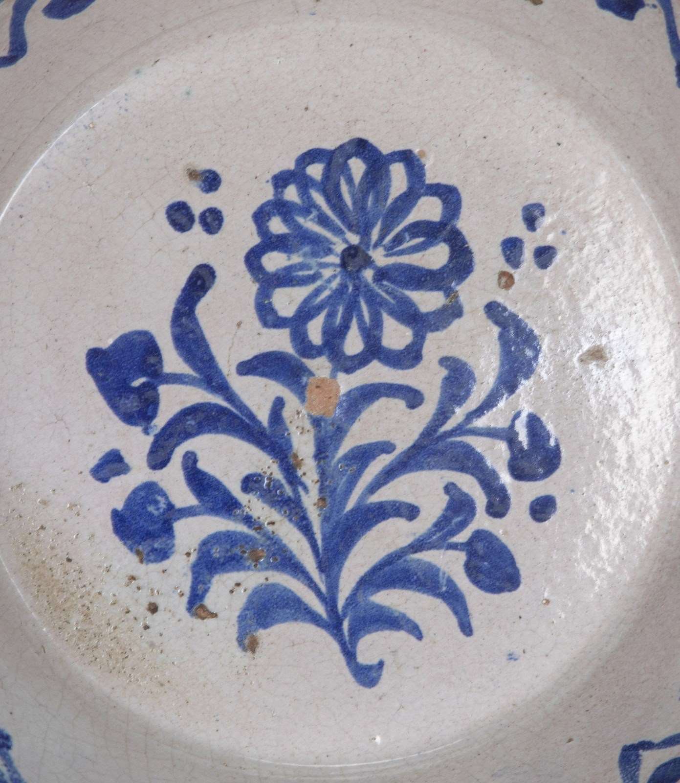 Late 19th Century Spanish blue and white Fajalauza pottery bowl from Granada. Circa 1880.
